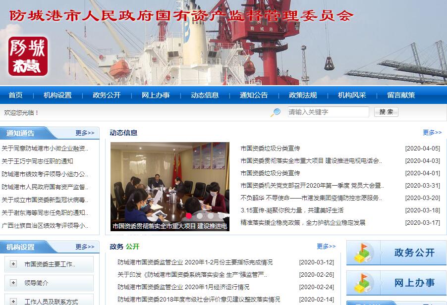 防城港市人民政府国有资产监督管理委员会贯彻落实党中央和自治区党委、市委关于国有企业资产监督管理工作的方针政策和决策部署,在履行职责过程中坚持和加强党对国有企业资产监督管理工作的集中统一领导。其主要职责是:(一)贯彻执行《中华人民共和国公司法》、《中华人民共和国企业国有资产法》等法律、法规和市人民政府规范性文件的规定,起草国有资产监督管理的地方规范性文件草案及有关监管制度。(二)根据市人民政府授权,履行出资人职责,监管市直属企业的国有资产,加强国有资产的管理工作。(三)指导推进全市国有企业改革和重组,推进国有企业的现代企业制度建设,完善公司治理结构,推动国有经济布局和结构的战略性调整。(四)承担监督所监管企业国有资产保值增值的责任。建立和完善国有资产保值增值指标体系,拟订考核标准对所监管企业国有资产的保值增值情况进行监管,负责所监管企业工资分配管理工作。(五)按照干部管理权限,通过法定程序对所监管企业负责人进行任免、考核并根据其经营业绩进行奖惩,建立符合社会主义市场经济体制和现代企业制度要求的选人、用人机制,完善经营管理者激励和约束制度。(六)负责组织所监管企业上交国有资本收益,参与制定国有资本经营预算有关管理制度和办法,按照有关规定负责国有资本经营预决算编制和执行等工作。(七)根据市人民政府的授权,负责经营性国有资产的监督管理。(八)指导县(市、区)国有资产的监督管理工作。(九)负责所监管企业党的组织建设和管理工作。(十)完成市委、市人民政府交办的其他任务。