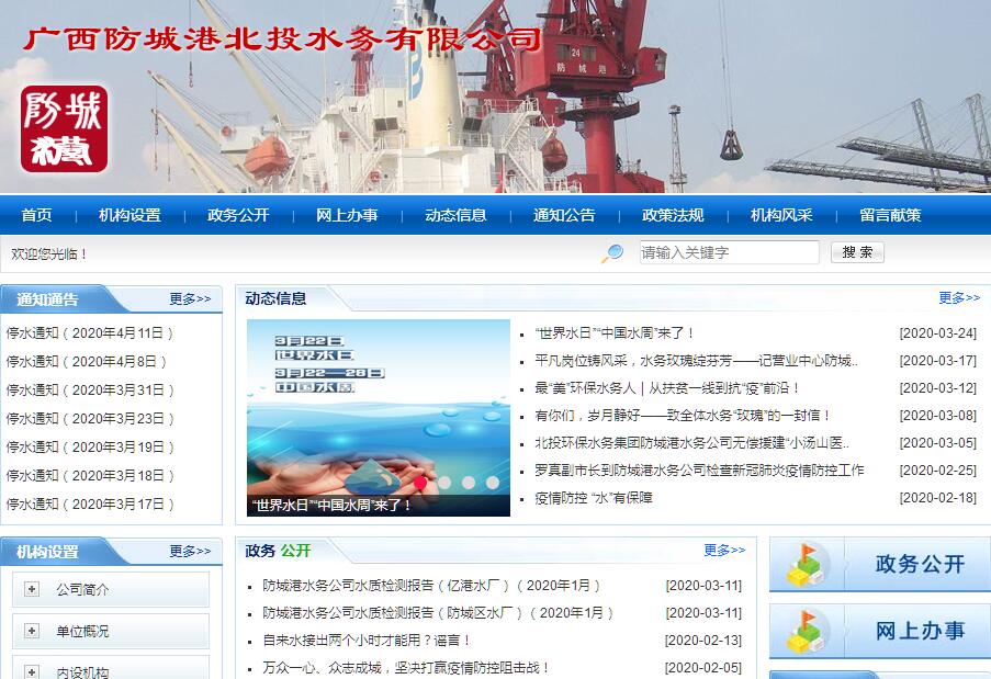广西防城港北投水务有限公司是广西北部湾水务集团有限公司控股子公司。2009年3月3日,防城港市人民政府与广西北部湾投资集团有限公司签订《防城港企沙工业区水务一体化项目投资与合作框架协议》,由防城港市人民政府指定防城港市城市建设投资责任公司(现更名为防城港市城市投资发展集团有限公司)与广西北部湾投资集团有限公司共同出资组建广西防城港北投水务有限公司;2009年4月29日,广西防城港北投水务有限公司正式注册成立,注册资本1000万元,广西北部湾投资集团占出资比例55%,防城港市城市建设投资有限责任公司占出资比例45%;2013年4月,公司第一次临时股东会决议决定以2013年1月1日作变更基准日,将广西北部湾投资集团的全部股权变更为广西北部湾水务集团有限公司持有;2016年7月5日,公司注册资本变更为39019.89万元,广西北部湾水务集团占出资比例57%,防城港市城市建设投资有限责任公司占出资比例43%。2014年8月,广西防城港北投水务有限公司整合了由广西北部湾水务集团有限公司控股的防城港市群峰水利供水有限公司(水务集团占股75%);2016年5月,整合了由广西北部湾水务集团有限公司控股的防城港市亿港自来水有限公司(水务集团占股99%),内部实现人员、业务一体化管理。