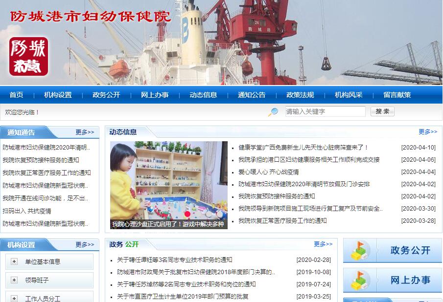 防城港市妇幼保健院成立于1994年,是一所集医疗、保健、科研及技术指导于一体的地市级妇幼保健院,承担着全市妇幼保健业务技术指导,坚持“以保健为中心,以保障生殖健康为目的,实行保健与临床相结合,面向基层、面向群体和预防为主”的妇幼卫生工作方针,为妇女儿童提供健康教育、预防保健等公共卫生服务,开展与妇女儿童健康密切相关的基本医疗服务。其主要职责是:(一)完成各级政府和卫生行政部门下达的指令性任务。(二)掌握本辖区妇女儿童健康状况及影响因素,协助卫生行政部门制定本辖区妇幼卫生工作的相关政策、技术规范及各项规章制度。(三)受卫生行政部门委托对本辖区各级各类医疗保健机构开展的妇幼卫生服务进行检查、考核与评价。(四)负责指导和开展本辖区的妇幼保健健康教育与健康促进工作;组织实施本辖区母婴保健技术培训,对基层医疗保健机构开展业务指导,并提供技术支持。(五)负责本辖区孕产妇死亡、婴儿及5岁以下儿童死亡、出生缺陷监测、妇幼卫生项目及技术管理等信息的收集、统计、分析、质量控制和汇总上报。(六)开展妇女保健服务,包括青春期保健、婚前和孕前保健、孕产期保健、更年期保健、老年期保健。重点加强心理卫生咨询、营养指导、计划生育技术服务、生殖道感染/性传播疾病等妇女常见病防治。(七)开展儿童保健服务,包括胎儿期、新生儿期、婴幼儿期、学龄前期及学龄期保健,受卫生行政部门委托对托幼园所卫生保健进行管理和业务指导。重点加强儿童早期综合发展、营养与喂养指导、生长发育监测、心理行为咨询、儿童疾病综合管理等儿童保健服务。(八)开展妇幼卫生、生殖健康的应用性科学研究并组织推广适宜技术。2017年11月,防城港市妇幼保健院与广西壮族自治区妇幼保健院结成全面托管型医联体,是广西壮族自治区妇幼保健院防城港院区。依托广西壮族自治区妇幼保健院雄厚的技术力量和强大的专家团队,防城港市妇幼保健院大力引进新设备、新技术、新项目,实现跨越式发展。2019年下半年,医院计划投入使用位于港口常山新区的新院区,届时将打破业务用房紧缺的窘境,最大程度发挥广西妇幼保健院的医疗资源价值优势和专业技术优势,使我市人民群众在家门口就可以享受到省级医疗保健服务。