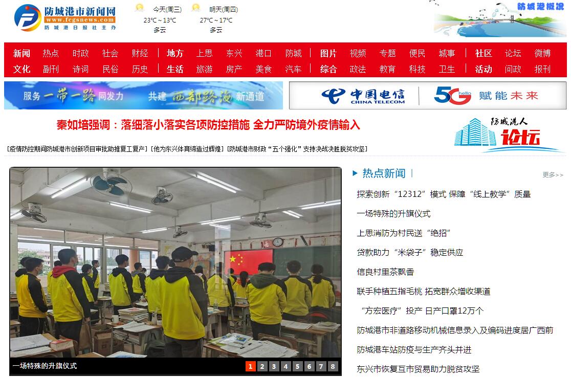 防城港市新闻网(www.fcgsnews.com)由防城港市委宣传部主管、防城港日报社主办,2010年6月28日正式开通,是目前防城港市唯一的重点新闻门户网站,获广西壮族自治区人民政府新闻办公室颁发的互联网新闻信息服务备案许可证。防城港市新闻网是一个以新闻为主打的集信息、政务、办事、生活、交友、商务等于一体的交流平台,汇集了防城港市社会、经济、文化、生活等各个方面最新、最权威、最丰富的新闻资讯。主要开设有热点新闻、热点追踪、嘉宾访谈、地方部门频道、图片新闻、信息服务、政务公开、文化、港城生活、东盟资讯、视频等多个频道、栏目以及可以在线看报的《防城港日报》数字报,并开通了论坛(防城港人论坛 bbs.fcgsnews.com)和《防城港手机报》,每天有专人负责管理并进行实时更新,遇到重大宣传题材还开设专题栏目进行报道,主要新闻资讯来源于防城港市委、市政府、《防城港日报》及新华社、新华网、人民网、广西新闻网等,网民来自世界各地,访问量日益增多,是世界了解防城港市经济社会发展情况的最佳平台,是防城港市对外宣传的重要窗口。防城港市新闻网大力宣传党的主张,积极引导社会舆论,热情服务广大网民。在紧紧围绕防城港市委、市政府中心工作做好宣传报道的基础上,以刊登公益广告、便民服务信息等方式热情服务广大网民。同时,坚守行业道德操守,严格依法文明办网, 积极引导广大网民文明上网,努力营造一个文明健康的网络环境。2012年被评为广西首批文明网站,2011和2012年连续被评为防城港市“十佳文明网站”。