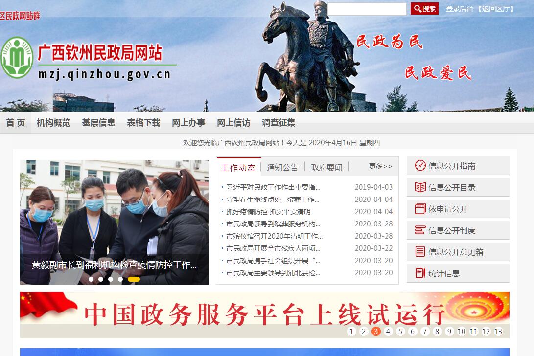 钦州市民政局主要职责:(一)贯彻执行国家关于民政工作的法律法规,拟订全市民政事业发展规划和相关政策并组织实施,起草民政工作有关规范性文件。(二)按照管理权限依法对全市社会组织进行管理和执法监督,指导县(区)社会组织的登记管理和执法监督工作。(三)拟订全市社会工作、志愿服务政策和标准,会同有关部门推进社会工作人才队伍建设和志愿者队伍建设。(四)拟订全市社会救助政策、标准、规划,统筹社会救助体系建设,负责城乡居民最低生活保障、特困人员救助供养、临时救助和生活无着流浪乞讨人员救助管理工作,指导和负责全市低收入居民家庭经济状况核对工作。(五)拟订全市城乡基层群众自治建设和社区治理政策,指导城乡社区治理体系和治理能力建设,提出加强和改进城乡基层政权建设的建议,推动基层民主政治建设。(六)拟订全市行政区划总体规划。负责镇级以上行政区划设立、撤销、命名、更名和政府驻地迁移、行政区域界线变更的审核和报批。组织和指导县镇级行政区域界线的勘定和管理。负责地名管理,承办镇级以上行政区划名称、重要的自然地理实体地名命名、更名的审核报批。负责市内标准地名图书资料的审核。(七)负责婚姻登记管理工作,推进婚俗改革。(八)拟订全市殡葬管理政策、服务规范并组织实施,推进殡葬改革。(九)统筹推进、督促指导、监督管理养老服务工作,拟订全市养老服务体系建设规划、政策、标准并组织实施,承担老年人福利和特殊困难老年人救助工作。(十)拟订全市残疾人权益保护政策,统筹推进残疾人福利制度建设。(十一)拟订全市儿童福利、孤弃儿童保障、儿童收养、儿童救助保护政策、标准并组织实施,健全农村留守儿童关爱服务体系和困境儿童保障制度。承担华侨和香港、澳门、台湾居民收养登记工作,协办涉外送养登记。(十二)拟订全市促进慈善事业发展政策,指导社会捐助工作,负责福利管理工作。指导全市民政系统安全生产管理工作。(十三)完成市委、市人民政府交办的其他任务。
