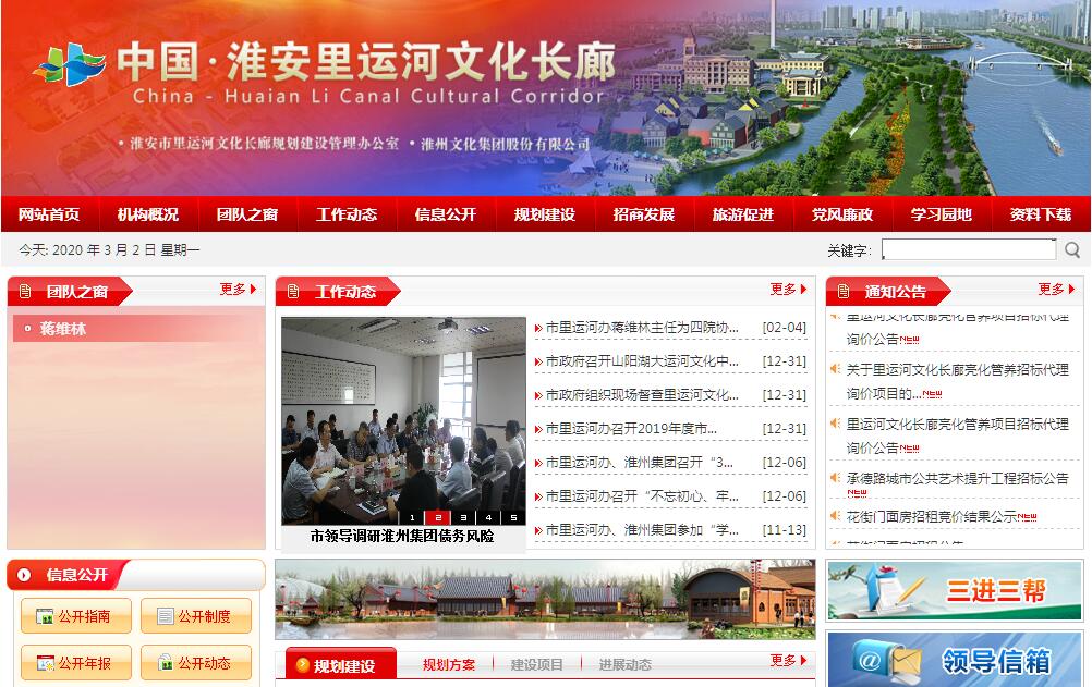 2013年初,淮安市委、市政府将里运河文化长廊建设列入全市十大重点工程之一。为加快里运河文化长廊规划建设工作,市政府于2013年7月批准成立了淮安市里运河文化长廊规划建设管理办公室(里运河办)和淮安市淮州文化集团股份有限公司(淮州集团公司)。里运河办为正处级事业单位,核定事业编制15人,内设四个职能处室,即综合处(挂财务审计处牌子)、规划建设处、旅游促进处、招商发展处,均为正科级。2014年底,根据市政府会议纪要精神,淮安运河博物馆从市文广局划归市里运河办,并增挂淮安市清江浦景区管理处牌子,为正科级事业单位。淮州集团公司为市属国有独资企业,注册资本10亿元,下设三个分公司,即淮安市里运河旅游发展有限公司、淮安市淮州文化传播有限公司、淮安市淮州投资开发有限公司。2016年初,淮州集团公司与国有企业淮安市富康房地产投资开发有限公司按照8:2出资组建了淮安市淮州富康投资开发有限公司。目前,市里运河办和淮州集团公司实行两块牌子一套班子体制。里运河办作为里运河文化长廊规划建设的牵头部门,重点负责整体规划设计和协调、督促沿线各区和市直相关部门做好各自所属区域里运河文化长廊项目建设工作。淮州集团公司主要作为里运河文化长廊项目的投资开发建设的融资平台,具体承担里运河文化长廊部分重点项目的招商融资、工程建设、旅游营销等工作。