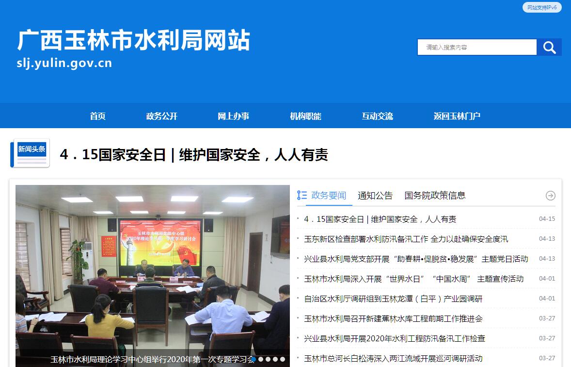 玉林市水利局是玉林市人民政府主管全市水利工作的职能部门。其主要职责是:(一)负责保障全市水资源的合理开发利用。拟订全市水利战略规划和政策,起草有关玉林市水利地方性法规、地方政府规章草案,组织编制全市水资源战略规划、玉林市确定的重要江河湖泊流域综合规划、防洪规划等重大水利规划。(二)负责全市生活、生产经营和生态环境用水的统筹和保障。组织实施最严格水资源管理制度,实施全市水资源的统一监督管理,拟订全市水中长期供求规划、水量分配方案并监督实施。负责重要区域以及重要水利工程的水资源调度。组织实施取水许可、水资源论证和防洪论证制度,指导开展水资源有偿使用工作。指导水利行业供水和乡镇供水工作。(三)按规定制定全市水利工程建设有关制度并组织实施,负责提出全市水利固定资产投资规模、方向、具体安排建议并组织指导实施,按玉林市人民政府规定权限审批、核准国家、自治区和玉林市规划内和年度计划规模内固定资产投资项目,提出中央、自治区和玉林市水利资金安排建议并负责项目实施的监督管理。(四)指导全市水资源保护工作。组织编制并实施全市水资源保护规划。指导饮用水水源保护有关工作,指导地下水开发利用和地下水资源管理保护。组织指导地下水超采区综合治理。(五)负责全市节约用水工作。拟订全市节约用水政策,组织编制节约用水规划并监督实施。组织实施用水总量控制等管理制度,指导和推动节水型社会建设工作。(六)指导全市水利设施、水域及其岸线的管理、保护与综合利用。组织指导全市水利基础设施网络建设。指导全市重要江河湖泊的治理、开发和保护。指导全市河湖水生态保护与修复、河湖生态流量水量管理以及河湖水系连通工作。(七)指导监督全市水利工程建设与运行管理。指导具有控制性的和跨县(市、区)的重要水利工程建设与运行管理。指导监督病险水库、水闸、江河堤防的除险加固。负责直属水库工程运行管理。(八)负责全市水土保持工作。拟订全市水土保持规划并监督实施,组织实施水土流失的综合防治、监测预报并定期公告。负责生产建设项目水土保持监督管理工作,指导国家、自治区和玉林市水土保持建设项目的实施。(九)指导全市农村水利水电工作。组织开展大中型灌排工程规划、建设与改造。指导农村饮水安全工程建设管理工作,指导节水灌溉有关工作。指导农村水利改革创新和社会化服务体系建设。指导全市农村水能资源开发、小水电改造和水电农村电气化工作。(十)组织全市重大涉水违法事件的查处,协调跨县(市、区)的水事纠纷,指导水政监察和水行政执法。组织开展水利行业质量监督工作。依法负责水利行业安全生产工作,组织指导水库、水电站大坝、农村水电站的安全监管。组织指导全市水利建设市场的监督管理和水利建设市场信用体系建设,组织实施水利工程建设的监督。(十一)开展全市水利科技工作。负责水利科学技术管理工作,组织开展水利行业质量技术监督工作。(十二)承担全市全面推行河长制湖长制相关工作。承担玉林市河长制办公室的日常工作事务,组织指导全市河长制湖长制实施和监督考核。督促落实玉林市河长会议议决事项和玉林市总河长、河长交办的其他工作。(十三)负责落实综合防灾减灾规划相关要求,组织编制全市洪水干旱灾害防治规划和防护标准并指导实施。组织编制重要江河和重要水工程防御洪水抗御旱灾调度及应急水量调度方案。承担防御洪水应急抢险的专业技术支撑。指导台风防御期间重要水工程调度工作。(十四)完成玉林市委、市人民政府交办的其他任务。