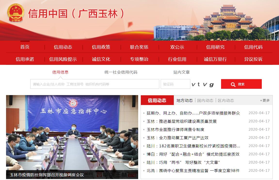 | 网站简介: 信用玉林,信用中国(广西玉林)由玉林市发展和改革委员会、中国人民银行玉林市中心支行主办。 |