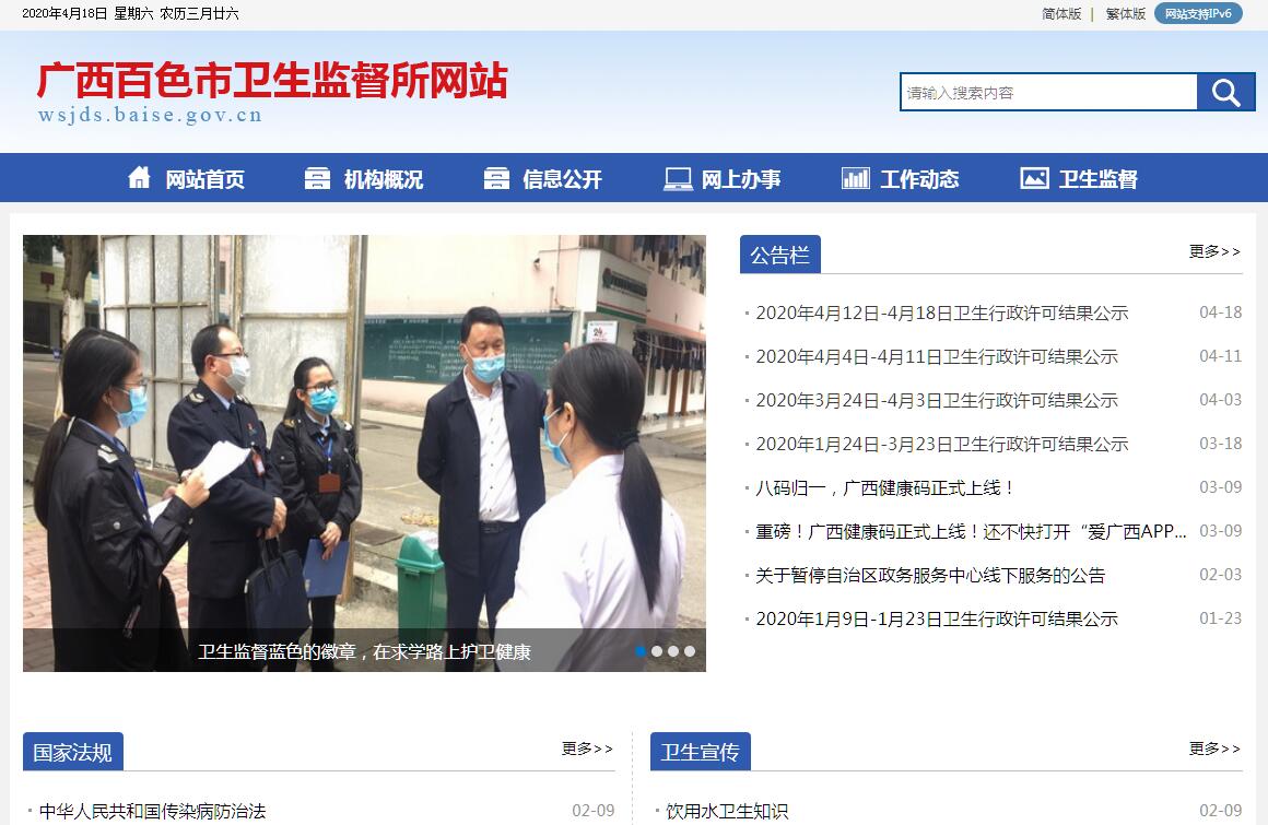 百色市卫生监督所是全市范围内行使卫生监督职能的执法机构,在百色市卫生健康委员会领导下,依法承担公共场所卫生、饮用水卫生、学校卫生、医疗卫生、职业卫生、放射卫生、传染病防治、计划生育和中医服务等综合行政执法工作任务。其主要职责有:一、制定管辖范围内卫生执法工作计划,并组织实施和定期上报卫生执法情况;协助同级卫生健康行政部门定期向社会通报卫生监督结果;指导下级卫生监督机构的执法工作。二、负责卫生行政许可的申请受理、初审、上报,以及卫生许可证的发放管理工作。三、开展经常性卫生监督,组织现场卫生监测采样,定期报送卫生监督、监测结果。协助上级卫生健康行政部门向社会公布卫生监督、监测情况。四、对新、改和扩建的建设项目的选址、设计和施工进行预防性卫生监督。五、对违反卫生法律、法规和规章的违法行为进行调查取证,纠正一般违法行为,提出行政处罚建议,负责行政处罚文书送达和执行;对辖区内的重大公共卫生事件进行调查,并提出处理意见。六、负责受理对卫生事件和卫生执法行为的投诉、举报和执法监督工作。七、开展卫生法律、法规知识的宣传教育和咨询服务,负责对卫生监督员法律知识和业务的培训工作,对从业人员进行卫生知识培训。八、承担上级卫生健康行政部门交付的其他任务事项。