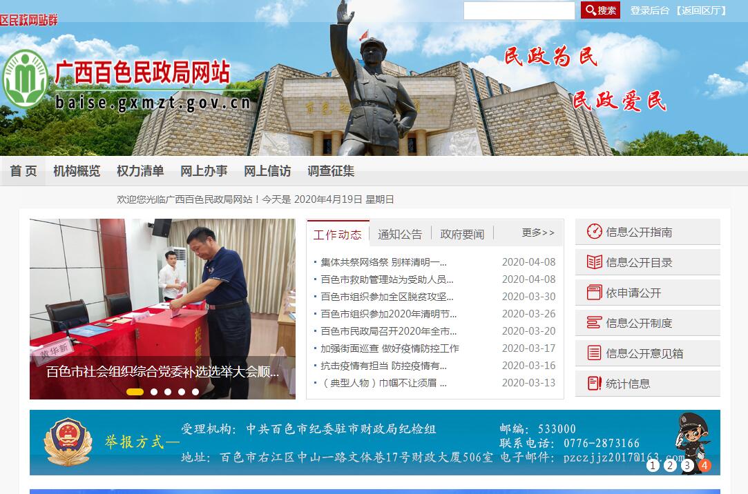 百色市民政局主要职责:(一)根据国家有关方针、政策和上级民政部门以及市委、市人民政府的工作部署,研究制定全市民政事业发展规划并组织实施和监督检查。(二)承担依法对全市性的社会团体、社会服务机构的登记管理和监察责任,提出财务管理办法;查处和取缔社团组织的违法行为,查处和取缔未经登记而以社团名义开展活动的非法组织;查处社会服务机构的违法行为和未经登记的社会服务机构单位;指导和监督县(市、区)社团、社会服务机构登记管理工作。(三)牵头拟订全市社会救助规划、政策和标准,健全城乡社会救助体系;指导和监督城乡居民最低生活保障金的分配使用和规范管理;负责城乡居民最低生活保障、特困人员救助供养、临时救助、生活无着人员救助工作。(四)拟订全市城乡基层群众自治建设和社区治理政策,指导城乡社区服务体系和治理能力建设,提出加强和改进城乡基层政权建设的建议,依法推动基层民主政治建设。(五)负责乡(镇)、村以上行政区域的设立、撤销、命名、更名、政府驻地迁移、行政区域界线变更的审核和报批。负责地名管理,规范全市地名标志的设置和管理;负责市内标准地名图书资料的审定。承办乡级以上行政区划名称、重要的自然地理实体和边境地名命名、更名的审核报批。组织和指导县乡级行政区域界线的勘定和管理;参与市内县际行政界线争议的调查和调处。(六)拟定全市婚姻管理规范性文件;指导县(市、区)婚姻登记管理工作;负责全市婚姻登记信息管理工作;承办涉外婚姻登记和指导婚姻服务机构管理工作;倡导婚姻习俗改革。(七)负责全市社会福利事业管理工作,承担老年人、孤儿、特困人员等特殊困难群体权益保护的行政管理;拟订全市社会福利事业发展规划,拟订社会福利机构管理办法;组织、指导全市社会福利机构建设和管理;指导养老服务工作;指导全市社会慈善、社会捐助、群众互助等社会扶助活动,促进慈善事业发展。主管全市福利彩票的销售发行,管理本级福利资金。(八)拟订全市生活无着流浪乞讨人员救助、儿童收养和殡葬管理制度;承办涉外儿童收养登记工作;指导推进殡葬改革,指导收养、殡葬、救助服务机构管理工作。(九)会同有关方面拟订全市社会工作发展规划、政策和职业规范,推进全市社会工作、社会工作人才队伍建设和相关志愿队伍建设工作。(十)负责制定全市民政事业财务和统计管理制度;负责全市民政事业费预决算、民政资金分配和使用的监管。(十一)负责监督管理本部门主管行业领域、主管业务范围内的安全生产工作。(十二)完成市委、市人民政府交办的其他任务。
