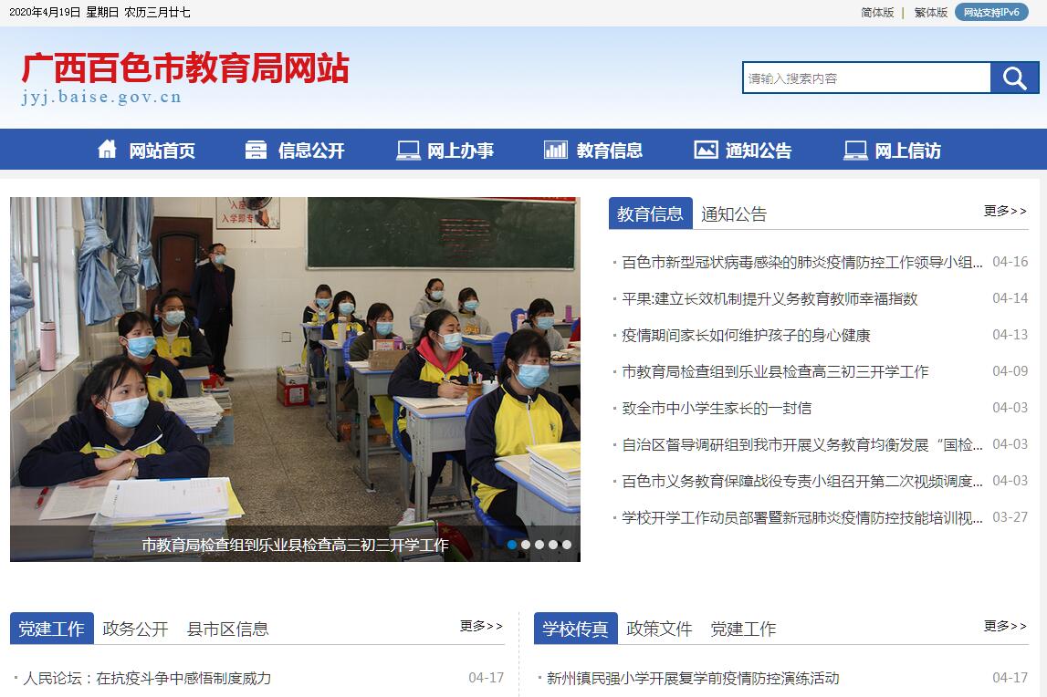 百色市教育局主要职责:(一)研究和指导全市教育系统党的建设、理论宣传。负责市教育局二层机构和市直学校党的建设,按管理权限选派民办中小学校党组织负责人。研究和指导全市教育系统工会、共青团、少先队、妇联等群体组织建设。(二)贯彻执行教育工作法律、法规和中央、自治区党委、市委关于教育工作的决策部署。拟订全市教育改革与发展的政策和规划,组织实施有关教育地方性法规。(三)指导全市中小学校的思想政治、德育、智育、体育卫生与艺术、劳动教育、国防教育、安全稳定工作。(四)负责推进全市教育现代化的有关工作。负责全市中小学校的统筹规划和协调管理,指导中小学校按照自治区拟订的学校设置标准做好规划建设和教育教学改革,负责全市教育信息的统计、分析和发布。(五)负责教育经费的统筹管理,参与拟订教育经费筹措、教育拨款、学生资助、教育基建投资的政策,负责统计全市教育经费投入情况。(六)负责基础教育的改革与发展工作。负责推进义务教育均衡发展和促进教育公平,负责推进普通高中教育、学前教育和特殊教育发展。全面实施素质教育。(七)负责职业教育的改革与发展工作。贯彻执行职业教育教学改革指导意见和办学标准,开展职业教育评估。指导各县(市、区)和有关部门做好职业教育学校布局和专业结构调整等工作,指导职业教育就业指导工作。(八)负责少数民族教育工作。统筹协调对少数民族和少数民族地区的教育援助。(九)负责全市教师工作。组织实施教师资格制度,指导和组织全市中小学校人才队伍建设。(十)负责各级教育类招生考试、自学考试和中小学学籍学历管理工作,组织拟订中小学校招生计划并组织实施。负责对有关教育考试违规行为的认定与处理。(十一)负责全市语言文字工作,拟订全市语言文字工作的政策和规划,指导语言文字规范化工作,监督检查语言文字的应用情况。指导推广普通话工作和普通话师资培训工作。(十二)负责全市中小学校对外合作与交流工作。参与汉语国际推广工作。统筹管理和指导全市中小学校与港澳台地区的教育合作与交流工作。(十三)负责全市教育信息化工作。拟订全市中小学校信息化规划并协调组织实施。(十四)负责全市民办教育学校的统筹规划、综合协调和宏观管理。完善民办教育管理的政策措施,依法制定全市民办教育发展的政策与规划,规范办学秩序,促进民办教育事业健康发展。(十五)指导全市教育督导工作。受市人民政府委托,负责对各县(市、区)人民政府及有关职能部门履行教育工作职责情况的督导检查。依法组织实施对全市中小学校的督导评估、检查验收、质量监测等工作。(十六)负责监督管理本部门主管行业领域、主管业务范围内的安全生产工作。(十七)完成市委、市人民政府交办的其他任务。