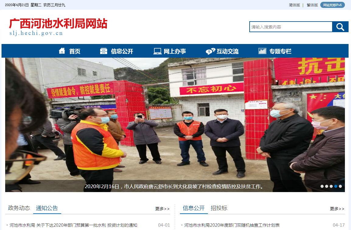 河池市水利局主要职责:(一)拟订水利中长期规划,组织编制主要江河的流域综合规划、防洪规划等重要水利规划。起草有关规范性文件草案。(二)对水利资金的使用进行宏观调节,组织制定、实施水利工程建设有关制度,负责提出水利固定资产投资规模和方向、国家、自治区和市财政性资金安排的意见,按规定权限,审批、核准国家、自治区和市规划内和年度计划规模内固定资产投资项目,提出中央、自治区和市水利建设投资安排建议并组织实施。(三)统筹兼顾生活、生产经营和生态环境用水,实施全市水资源的统一监督管理。拟订全市水中长期供求规划、水量分配方案和调度计划并监督实施,组织开展水资源调查评价工作,按规定开展水能资源调查工作,组织实施取水许可、水资源有偿使用和水资源论证。发布全市水资源公报。(四)负责全市节约用水工作,拟订节约用水政策,编制节约用水规划,制定有关标准,指导和推动节水型社会建设工作。(五)负责全市水资源保护工作。组织编制水资源保护规划,组织拟订全市主要江河水库水功能区划并监督实施,核定水域纳污能力,提出限制排污总量建议,指导饮用水水源保护工作。指导地下水开发利用和城市规划区地下水资源管理保护工作。(六)负责全市重大水事违法案件的查处,协调、仲裁跨县(市、区)、部门之间水事纠纷,组织、指导水政监察和水行政执法。(七)审核重要中小型水利建设项目建议书、可行性研究报告和初步设计;组织重要水利科学研究,负责水利科技成果鉴定、管理和技术推广;组织实施水利行业技术质量标准和水利工程的规程、规范。(八)组织、指导水利设施、水域及其岸线的管理与保护;组织指导江河、水库、河口、滩涂的治理和开发,实施防洪论证制度。负责配合编制省际界河水利工程规划和建设的管理工作。(九)负责全市水工程建设和运行的行业管理,组织实施具有控制性的或跨县和市的水利工程建设与运行管理。组织开展水利行业质量监督工作,依法负责水利行业安全生产监督管理工作,组织、指导水库、水电站大坝及江河堤防的安全监管。指导水利建设市场的监督管理,组织实施水利工程建设的监督。(十)指导全市农村水利工作。组织协调农田水利基本建设,指导农田灌溉节水排水、农村饮水安全及村镇供水等工程建设与管理工作,指导农村水利社会化服务体系建设。(十一)负责水能资源及地方电力农村水电的行业管理,负责组织实施水电农村电气化和小水电代燃料建设工作。(十二)负责防治水土流失。拟订全市水土保持规划并监督实施,组织实施水土流失的综合防治、监测预报并定期公告,负责有关生产建设项目水土流失方案的审批、监督实施及水土保持设施的验收工作,指导有关水土保持建设项目的实施。(十三)指导全市水利系统综合协调、职工教育培训、职称改革、人事管理等工作。(十四)负责河池市防汛抗旱指挥部的日常工作,组织、协调、监督、指导全市防汛抗旱工作,对辖区内主要江河和重要水工程实施防汛抗旱调度,编制河池市防汛抗旱应急预案并组织实施。按分级管理规定,组织或指导水利突发公共事件的应急管理工作。(十五)承办河池市人民政府交办的其他事项。