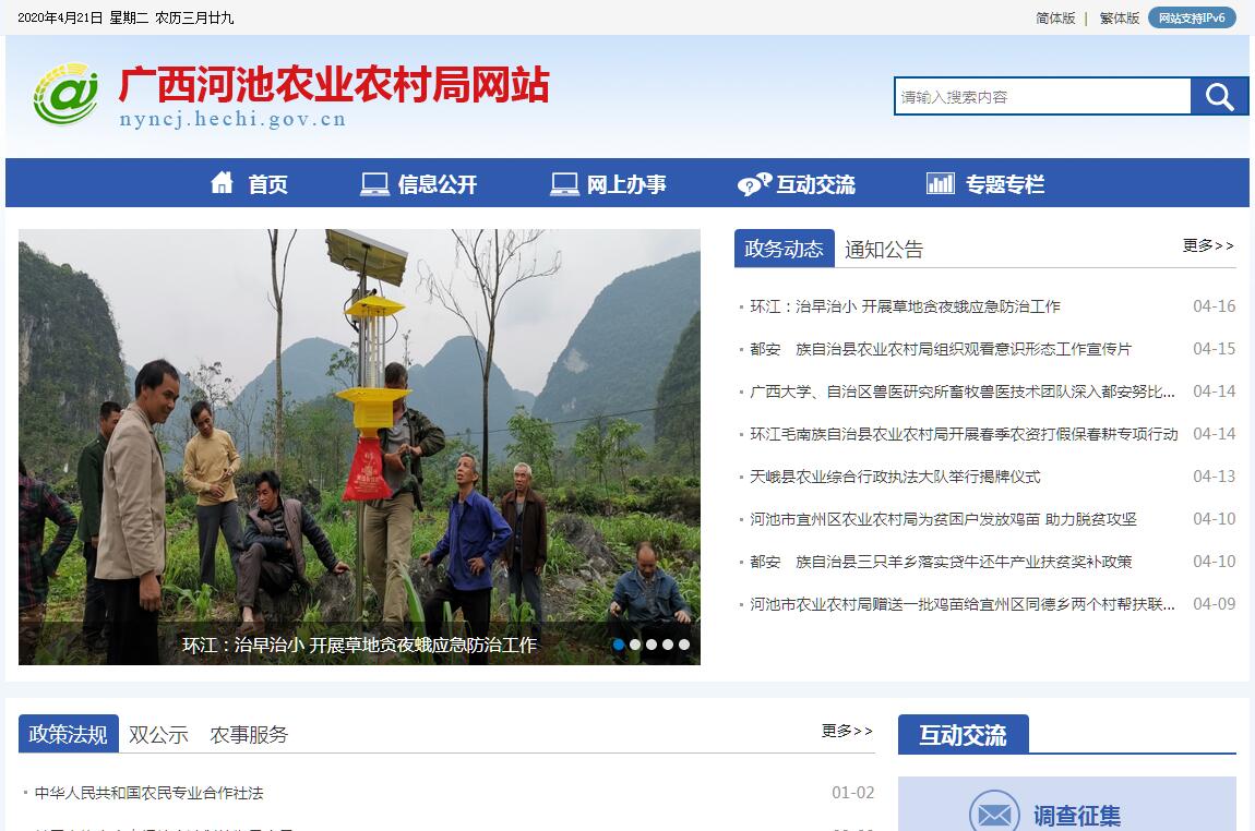河池市农业农村局主要职责:(一)研究并组织实施全市“三农”工作的发展战略、中长期规划、重大政策、重大举措。组织开展全市农业农村改革发展重大问题的调查研究。(二)负责提出全市“三农”发展的工作意见。参与农业行政执法体系建设,指导全市农业综合执法。参与涉农的财税、价格、收储、金融保险、进出口等政策制定。(三)统筹推动发展全市农村社会事业、农村公共服务、农村文化、农村基础设施和乡村治理。协调推进改善农村人居环境。指导农村精神文明和优秀农耕文化建设。指导农业行业安全生产工作。(四)承担全市深化农村经济体制改革和巩固完善农村基本经营制度的职责并组织实施。负责农民承包地、农村宅基地改革和管理有关工作。牵头负责农村集体产权制度改革,指导农村集体经济组织发展和集体资产管理工作。指导农民合作经济组织农业社会化服务体系、新型农业经营主体建设与发展。指导农村有关改革试验区建设和美丽乡村建设。(五)指导全市乡村特色产业、农产品加工业、休闲农业发展工作。提出促进大宗农产品流通的建议,培育、保护农业品牌。发布农业农村经济信息,监测分析农业农村经济运行。承担农业大数据和农业农村信息化有关工作。归口管理农业农村相关对外宣传及信息发布工作。(六)负责全市种植业、畜牧业、渔业、农业机械化等农业各产业的监督管理。指导全市农产品生产。组织构建现代农业产业体系、生产体系、经营体系,指导农业标准化生产。监督管理全市渔业和渔政渔港,参与国家渔业维权护渔。(七)监督管理全市农产品质量安全。组织开展农产品质量安全监测、追溯、风险评估,会同有关部门组织实施农产品质量安全国家标准及广西特色农产品安全标准。指导全市农业检验检测体系建设。(八)组织全市农业资源综合区划与开发利用。承担农用地、渔业水域以及农业生物物种资源的保护与管理,负责水生野生动植物保护、耕地及永久基本农田质量保护工作。指导河池市农产品产地环境管理和农业清洁生产。指导设施农业、生态循环农业、节水农业发展以及农村可再生能源综合开发利用、农业生物质产业发展。牵头管理外来物种。(九)监督管理全市主要农业生产资料和农业投入品。指导农业生产资料市场体系建设。组织兽医医政、兽药药政药检工作,负责执业兽医和畜禽屠宰行业管理。(十)指导全市农业防灾减灾、农作物重大病虫害防治工作。指导动植物防疫检疫体系建设,组织、监督市内动植物防疫检疫,发布疫情并组织扑灭。(十一)负责全市农业投资管理。提出农业投融资体制机制改革建议。组织编制河池市农业投资建设规划,提出农业投资规模和方向、扶持农业农村发展财政项目的建议,承担中央、自治区农业投资建设项目,按规定权限审批农业投资项目,参与农业投资项目资金安排和监督管理。(十二)推动全市农业科技体制改革和农业科技创新体系建设。指导农业产业技术体系和基层农技推广体系建设,组织开展农业领域的科学研究、成果转化和技术推广,负责农业转基因生物生产安全监督管理和农业植物新品种保护。(十三)指导全市农业农村人才工作。拟订农业农村人才队伍建设规划并组织实施,指导农业教育和农业职业技能开发,指导新型职业农民培育、农业科技人才培养和农村实用人才培训工作。(十四)组织开展农业对外交流合作。拟订全市农业对外开放的发展战略和对策。组织开展有关经济、技术交流与合作。(十五)完成市委、市人民政府交办的其他任务。