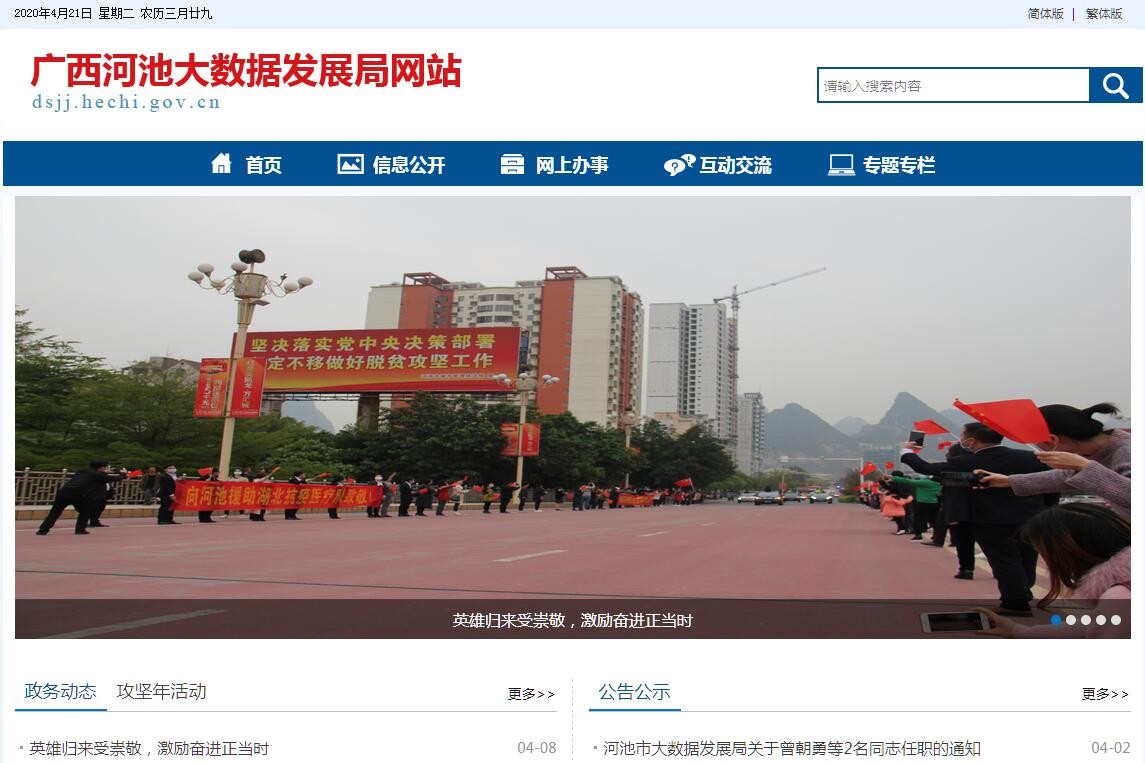 河池市大数据发展局贯彻落实党中央、自治区党委关于大数据发展、政务服务和公共资源交易工作的方针政策和决策部署,按照市委的部署要求,在履行职责过程中坚持和加强党对大数据发展、政务服务和公共资源交易工作的集中统一领导。其主要职责是:(一)负责统筹推进全市信息化、数字化发展工作。负责统筹河池市相关机构的信息化、数字化领域有关项目建设,信息资源开发利用与共享,政务服务和公共资源交易监督管理等工作。负责全市大数据发展、数字河池建设、政务服务、政务公开和公共资源交易的管理、指导、协调和监督等工作。(二)负责起草“放管服”相关改革、大数据发展、数字河池建设、政务服务、政务公开和公共资源交易领域的规范性文件,拟订相关行业技术标准规范、管理办法和考核评估办法并组织实施。(三)负责组织拟订并推动实施大数据发展、数字河池发展战略规划,负责拟订并组织实施全市数字政府、数字经济、数字社会、数字设施领域的专项发展规划和年度计划。统筹协调工作中的重大问题,提出加快大数据发展、数字河池建设的意见建议。(四)负责拟订市本级信息化、数字化领域的财政性资金(专项资金)年度投资计划并组织实施。负责审核市本级信息化、数字化领域财政性资金投资项目。(五)负责统筹协调推进数字设施建设,配合做好网络安全工作。负责推进电子政务网络、数据资源安全体系建设。负责协调通信基础设施等其他基础设施建设。负责协调推进公共数据共享开放平台建设。(六)负责统筹全市数据资源建设、管理、应用,政务数据的汇聚、共享。指导协调行业主管部门推动社会数据的汇聚、共享,统筹推进政府数据和社会数据的开放、应用。(七)负责统筹数字政府建设。负责全市统一的电子政务云平台、公共应用平台和公共支撑平台建设,负责数字政府建设和政务服务,政务公开、电子政务的推进、协调、指导、监督、考核等工作。负责全市政府网站、政府热线的统筹规划、监督考核、综合分析等工作。(八)负责统筹数字经济发展。协调推进大数据与三次产业深度融合。协调业务主管部门推动大数据、人工智能、物联网等新一代信息技术在实体经济中的创新融合。负责全市数字经济运行分析。(九)负责统筹数字社会建设。协调推动互联网、大数据、云计算、人工智能等新技术与社会民生深度融合。协调推进数字城市、数字乡村,数字信用、数字文化、数字公共安全等领域的大数据应用。协调推动数字民生服务市场化发展。(十)负责统筹推进全市行政审批制度改革。负责协调推进行政许可事项的清理、规范、管理等工作,规范行政审批行为,推进审批服务便民化。负责审核并督促落实取消下放审批事项的事中事后监管措施。(十一)负责对进驻市政务服务平台的政务服务事项的组织协调和监督管理。负责对全市各部门实施行政权力涉及的中介服务行为进行综合协调监督。负责指导、推进全市政务服务信用体系建设。负责进驻市政务服务平台的窗口单位及其工作人员的管理、考核及奖惩。负责对进入市政务服务中心的行政审批及其他公共服务等事项的投诉举报的承办、转办和督办工作。(十二)指导全市公共资源交易监督管理工作,拟订规章制度并组织实施。负责对行业主管部门履行公共资源交易监管职责的督查工作。负责市本级公共资源交易活动的监督管理工作。(十三)负责统筹大数据领域人才队伍建设。(十四)完成市委、市人民政府交办的其他任务。
