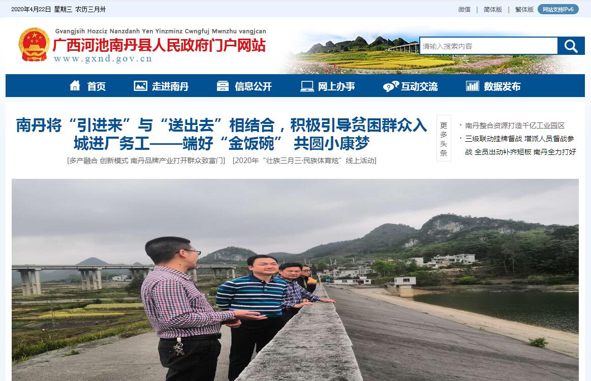 南丹县位于河池市西北部。黔桂铁路、210国道、六河高速公路、红水河过境。辖8个镇和3个乡,县人民政府驻城关镇,行政区域面积3905平方千米。2018年末人口32.68万人,其中农村人口24.61万人。人口自然增长率7.78‰。耕地面积2.35万公顷,农田有效灌溉面积0.59万公顷,粮食播种(含复种)面积1.93万公顷,经济作物种植面积0.50万公顷,林地面积22.04万公顷。社会用电量5.29亿千瓦时。农业机械总动力26.53万千瓦。等级公路里程1259.43千米,其中二级以上公路218.54千米。主要旅游景区(点)有温泉公园、歌娅思谷白裤瑶民俗风情园、芒场镇巴平乡村旅游区、洞天酒海景区、恩村洞、铜江公园、白裤瑶生态博物馆、里湖风情小镇、古榕鸳鸯桥景区、八穿河地下大峡谷国家级水利风景区、六寨景区(莫树杰将军故居)等,其中歌娅思谷、洞天酒海景区被评为国家4A级景区。全年接待国内游客313.01万人次。重要矿产资源有锡、锑、锌、铟等有色金属20多种,其中锡储量135万吨。著名地方产品有丹泉酒、南丹瑶鸡、中堡黄牛、长角辣椒、巴平大米、黄腊李、烤烟、桐油等,是中国有色金属之乡、长角辣椒之乡、瑶鸡之乡、黄腊李之乡、烟叶生产基地。2018年实现地区生产总值124.84亿元,其中第一产业增加值12.70亿元,第二产业增加值59.32亿元(其中工业增加值52.42亿元),第三产业增加值52.81亿元。人均生产总值42563元。财政收入11.06亿元,其中公共财政预算收入5.69亿元;公共财政预算支出27.18亿元。全社会固定资产投资完成额增长16.5%。社会消费品零售总额33.87亿元。外贸出口总额72.02万美元。实际利用外资1200万美元。城镇居民人均可支配收入33239元,人均消费性支出19392元。农村居民人均纯收入10883元,人均生活费支出7842元。城乡居民年末储蓄存款余额64.59亿元。