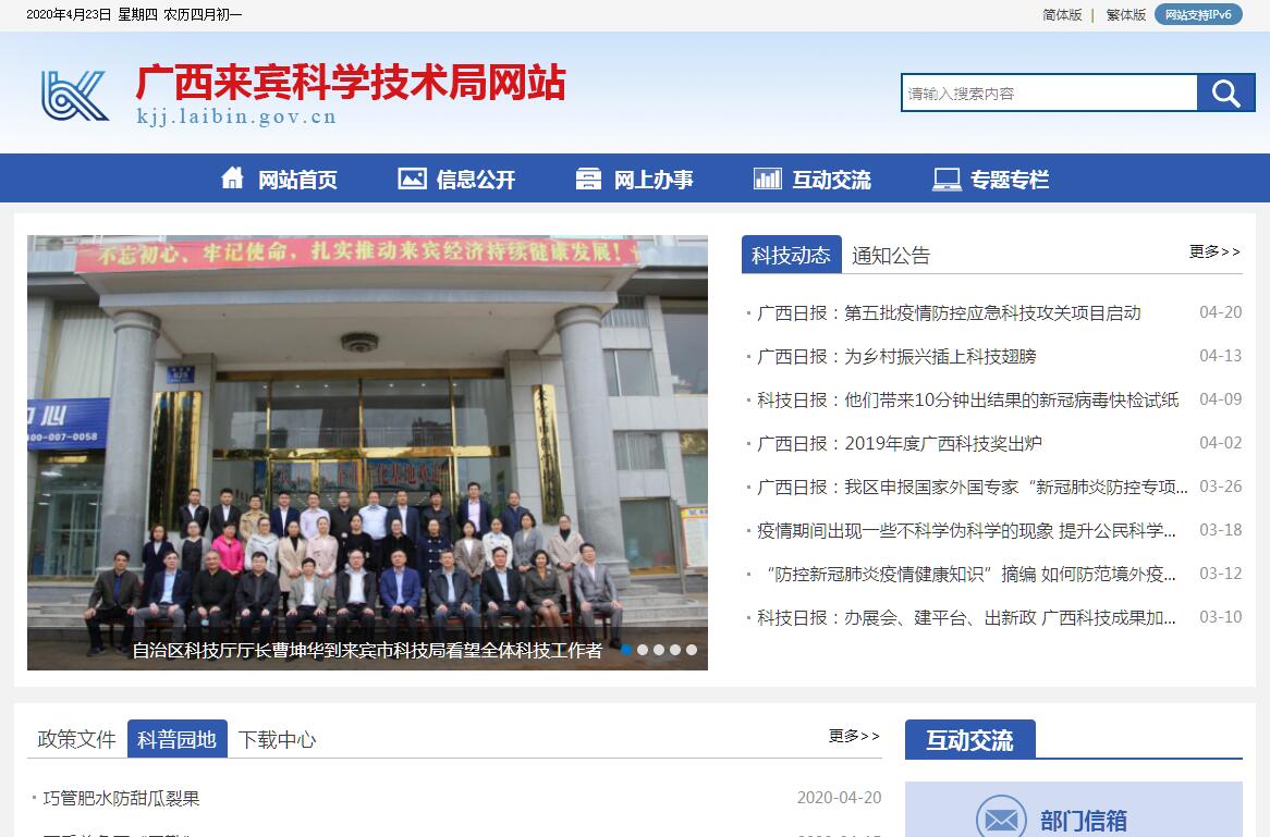 来宾市科学技术局主要职责:(一)组织贯彻执行国家、自治区科学技术的方针、政策、法规;负责提出本市科技发展和科技促进经济、社会发展的方针、政策;调查研究科技促进经济与社会发展的重大问题和科技发展的重大布局和优先领域;负责提出本市重点产业技术政策;推动本市科技创新体系建设,提高本市科技创新能力。(二)组织编制本市科学技术发展中长期规划和年度计划;组织编制和实施本市重大科技项目,重点科研试验基地的计划。(三)组织开展深化科技体制改革,指导推进本市科技体制改革工作;推动建立适应社会主义市场经济和科技自身发展规划的科技创新体制和机制;负责提出制订本市科技政策的建议,推动科技政策和法规建设。(四)负责组织本市高新技术研究发展计划、科技创新工程计划、社会发展等科技计划的制定与组织实施。(五)强化高新技术产精华及应用技术的开发与推广工作;指导科技成果转化;负责组织本市工业科技计划的制定与组织实施;指导本市科技创新工作的实施。(六)研究科技人才资源的合理配置,提出充分发挥科技人员积极性、创造科技人才成长良好环境的相关政策和建议;组织、指导本市科技管理人员的教育培训会同有关部门选拔培养学术技术带头人;会同有关部门选派和管理科技副职。(七)负责管理本市科技外事工作;负责科技合作项目的立项申报和科技合作项目的资金、人才、技术、设备引进;会同有关部门组织技术出口、技术引进和消化、吸收、创新工作。(八)负责拟定有关科技财务的政策和多渠道增加科技投入的措施,筹措科技资金;负责归口管理的科学事业费、科技 “三项经费”及相关科技经费的安排;优化科技资源配置。(九)负责管理本市科技成果、科技保密等工作。(十)牵头负责本市的科学技术普及工作,制定本市科学普及工作规划,实行政策引导和进行督促检查,推动科学技术普及工作发展;负责本市科普工作联席会议办公室工作。(十一)根据科技改革与发展的要求,组织开展软科学调查研究;负责管理本市科技信息、科技网络、科技期刊工作;审核科研机构的组建和调整;管理科技统计工作。(十二)指导、协调政府各部门、县(市、区)的科技管理工作;协调指导涉及全局性、跨部门、跨县(市、区)的科技工作,推动行业的科技进步;指导本市科技兴县(市、区)工作;根据本市科技教育领导小组的部署,负责对县(市、区)党政领导班子和行业主管部门领导班子科技与经济结合工作进行目标考核。(十三)负责管理本市知识产权工作和本市知识产权办公会议办公室的工作。(十四)负责本市科技教育领导小组办公室的工作。(十五)承办市委、市政府交办的其他事项。