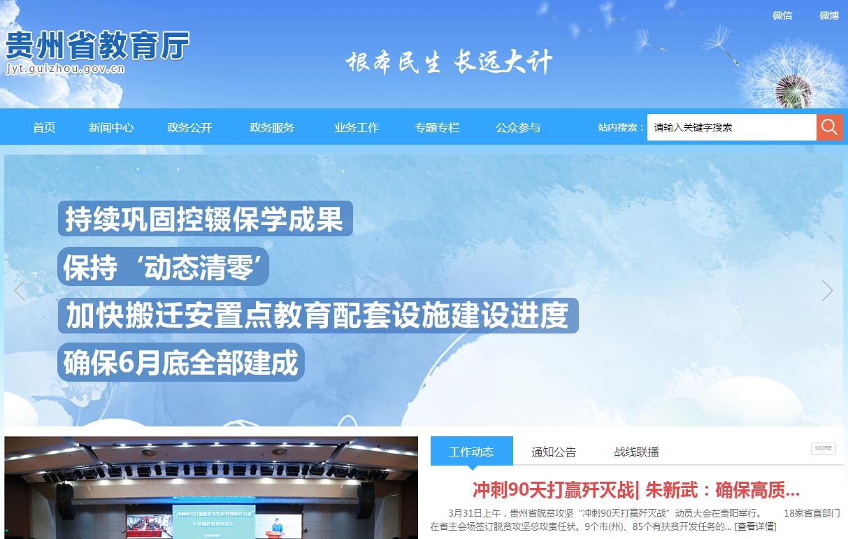 贵州省教育厅主要职责:(一)贯彻执行党和国家的教育方针、政策和法律、法规,拟订全省教育事业发展规划并指导、协调和监督实施,起草地方性教育法规草案及有关教育工作的实施意见。(二)加强全省基础教育工作的统筹管理,以农村教育为重点,推进义务教育均衡发展,促进公共教育资源进一步向农村和民族地区倾斜,促进教育公平,指导与评估普及九年义务教育和扫除青壮年文盲工作。(三)全面实施素质教育,深入推进基础教育改革,切实减轻中小学生的课业负担,加强中小学德育,指导义务教育发展水平、质量的监测工作。(四)大力发展职业教育,坚持以就业为导向,深化职业教育改革,提高职业院校的办学水平和质量,积极推进职业教育体制机制创新,进一步增强职业教育发展活力。(五)统筹管理各类高等教育、学位与研究生教育和继续教育等工作,深化高校管理体制改革和教学改革,扩大高校办学自主权,提高高等教育质量。(六)负责本部门教育经费的统筹管理,参与拟订教育经费筹措、教育拨款、教育基建投资的政策,监督全省教育经费的筹措和使用情况,管理国内外对我省的教育援助和教育贷款,负责教育基本信息的统计、分析和发布。(七)统筹和指导少数民族教育工作,协调对少数民族和民族地区的教育援助。(八)加强民办教育的统筹规划、综合协调和指导管理,贯彻落实促进民办教育发展的政策措施,规范办学秩序,促进民办教育事业健康发展。(九)规划、指导全省教育系统党的建设、思想道德建设和统战工作,指导高等学校干部队伍建设,参与考察高等学校领导班子,提出领导班子充实调整方案。(十)规划、指导全省各级各类学校德育、法制宣传教育、体育卫生与艺术教育及国防教育工作,指导高等学校的稳定工作。(十一)主管全省教师工作,组织实施教师资格制度,统筹规划教育系统人才队伍建设工作。(十二)负责各类高等、省属中等学历教育的招生考试和学籍学历管理工作,制定各类高等学校和省属中等专业学校招生计划,指导普通高等学校开展大学生就业创业工作。(十三)规划、指导教育系统自然科学、哲学和社会科学研究,指导高等学校科技成果转化工作,协调并指导高等学校承担国家重大科研项目的实施工作,指导高等学校重点学科建设。(十四)组织指导教育方面的对外合作与交流,指导教育系统对外宣传和对外汉语教学工作,开展与港澳台的教育合作与交流。(十五)承担省人民政府教育督导室和省语言文字工作委员会的具体工作。(十六)负责实施国家学位制度,承办省人民政府学位委员会的有关工作。(十七)承办省委、省人民政府和教育部交办的其他事项。