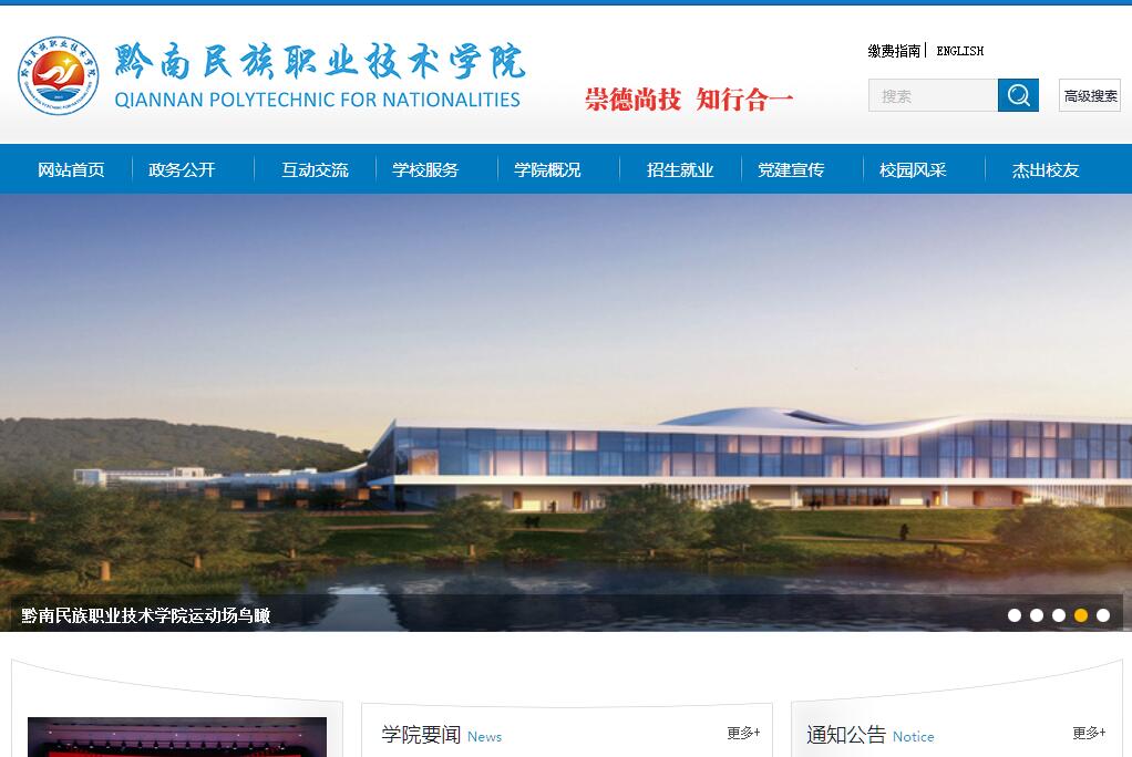 黔南民族职业技术学院是贵州省人民政府于2001年8月批准建立的贵州省第一批综合性全日制公办高等职业技术学院,由原国家级重点中专黔南民族行政管理学校、省级重点中专黔南民族财政学校、黔南民族农业学校和黔南民族工业学校四所中专学校合并组建而成。学院坐落在全球绿色城市、中国优秀旅游城市、黔南布依族苗族自治州首府——都匀市,占地面积1204亩,校园内山水相连、绿树成荫,绿地率达70%以上,享有“花园式学校”美誉,是贵州省唯一首个3A级研学校园景区。是教育部命名的贵州省首批唯一“国防教育特色学校”,贵州省优质高职院校建设立项学校,黔南州唯一的教育部“教育部现代学徒制试点学校”、贵州省唯一的“都匀毛尖茶手工制作非遗培训基地”和“士官直招培养基地”。学院现有教职工近700人,其中专任教师近300人,教授、副教授100余人,“双师型”教师近200余人。目前,在校生近13000人,毕业生就业率保持在97%以上。培养了杨永英、余贤臣、徐先稈、黄清发、罗心华、王开菊等杰出校友。学院始终牢记党的教育方针,坚持社会主义办学方向,以培养德智体美劳全面发展的社会主义建设者和接班人为根本任务,以服务地方经济社会发展为宗旨,以促进学生就业为导向,以培养高级技术技能人才为目标,全面实施红色文化传承育人、职业技能操守育人、传统文化滋养育人、民族文化和谐育人、军旅文化纪律育人、生态文化山水育人、典型事迹引导育人,开展高、中等职业技术学历教育,同时举办成人教育与职业技能培训。学院现设有管理系、会计系、大数据与电子商务系(黔南互联网营销学院)、现代山地农业工程系、汽车工程系、旅游与茶产业系(都匀毛尖茶学院)、建筑工程与设计系,开设有会计、财务管理、建筑工程技术、建筑室内设计、大数据技术与应用、电子商务、汽车检测与维修技术、新能源汽车技术、旅游管理、人力资源管理、畜牧兽医、农产品加工与质量检测等28个专业。学院内设第25国家职业技能鉴定所、计算机信息高新技术考试站、国家职业资格全国统一考试报名点等,是贵州省外派劳务培训基地,贵州省住建厅批准在州市建立的全省第一批“八大员”培训基地,贵州省文化厅批准的“都匀毛尖茶手工茶制作”非遗传承人培训基地,黔南会计电算化人员培训基地,黔南电子商务人员培训基地、黔南直招士官培养基地。学院立项建设国家级现代学徒制试点1个、国家级认定骨干专业5个,国家级认定协同创新中心1个,国家级认定开放实训基地1个。省级重点专业群1个、省级骨干专业5个、省级优秀教学团队2个、省级大师工作室2个、省级职教名师5人、省级精品在线开放课程5门、省级开放实训基地2个、省级现代学徒制试点1个、省级协同创新中心2个。近年来,师生在职业技能大赛中获国家级一等奖1项,二等奖4项,三等奖4项;获省一等奖9项、二等奖47项、三等奖82项。在科技文化体育活动中获国家级特等奖3项、一等奖2项、二等奖4项;获省级一等奖13项、二等奖8项、三等奖11项。建筑工程与设计系2018级工程造价2班程青青同学被英国爱丁堡大学录取。我校获得“贵州省技术能手”称号教师2人,学生3人。“十三‧五”以来,学院始终围绕省委省政府大扶贫、大数据、大旅游的发展战略,紧扣地方经济社会发展,紧盯地方产业发展,遵循职业教育发展规律,不断强化党的建设、基本建设、内涵建设和文化建设,致力于建成理念模式先进、人才队伍优秀、管理水平精细、办学特色鲜明、办学质量优质、服务能力高效,“区域领先、省内一流、特色鲜明”的省级优质高职院校。