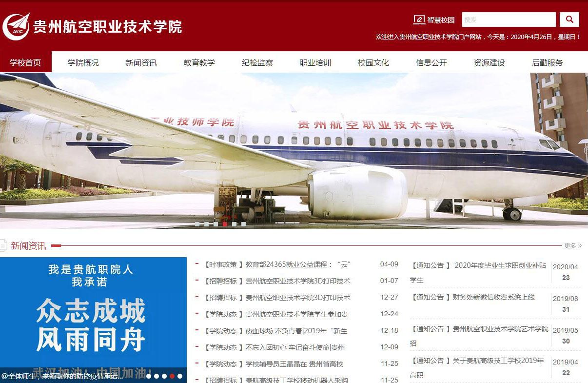 贵州航空职业技术学院(贵航高级技工学院)是一所集中、高职为一体的职业院校,始建于1977年,已有40余年办学历史,现隶属于中国航空工业集团有限公司,是一所由贵州航空工业职工大学、贵航高级技工学校、贵航集团职业教育培训资源整合的中央财政拨款的国有全日制普通高职院校。学院具有成人高等教育资质和国家重点技工学校办学资质,是贵州省第三国家职业技能鉴定所、全国首批“国家高技能人才培训基地“、首批“国家高技能人才培养示范基地“。2014年贵州省现代制造业教育集团成立,贵州航空职业技术学院被选为集团理事长单位。学院始终秉承“德技双修,知行合一“的校训,“重德兴校,育德树人“的办学理念,坚持培养社会尊重、企业欢迎的技能人才。办学以来为中国航空工业和省内外企事业单位培养和输送了6万多名各类中、高级技术人才和管理人才。2006年,国家劳动和社会保障部授予学院“国家技能人才培育突出贡献奖“,2016年学院通过贵州省“中等职业教育改革发展示范学校“评估验收。2014年获得“全国教育系统先进集体荣誉称号“,2016年获得省教育厅实施教育“9+3“计划先进单位。已为中国航空工业和省内外企事业单位培养和输送了2万多名各类中、高级技术人才和管理人才;2006年,原国家劳动和社会保障部授予我院“国家技能人才培育突出贡献奖”,2010年省教育厅批准我院为“中等职业教育改革发展示范学校”。2014年获得“全国教育系统先进集体荣誉称号”,2016年获得省教育厅实施教育“9+3”计划先进单位。学院位于贵阳市经济技术开发区小孟工业园区内。配备了新型多媒体设备,以及各种实验、实训设备,能较好地满足学生教学、实训需要。学院教学单位现有两个分院和三个教学系,分别是航空机电分院、艺术学院、汽车工程系、现代服务系、烹饪系,共开设了机械类、航空装备类、电工电子类、运输类、信息类、服务类、文化艺术类等中、高职专业共80多个,是一所中、高职相结合,技术培训和技能鉴定为一体的多层次、多专业、多学制的职业院校。学院共有国家级技能大师工作室2个,省级技能大师工作室2个。学院拥有全日制在校生16000余人,成人学历教育在校生近4000余人。学院积极开展校企合作,根据企业需要进行订单式培养,学生进校即与企业签订就业协议,近年来与省内外近25家企业进行订单培养,培养人数达3000余人,毕业生就业率连续多年在99%以上。作为国家首批高技能人才培训基地和贵航集团培训中心,学院始终坚持学制教育与短期培训并重的发展战略。近几年来,学院每年培训人次达到18000人以上,学院的短期培训较好的满足了企业对技能人才培养的需求。贵州航空职业技术学院将紧紧抓住职业教育发展的大好机遇,坚持“产业化发展、企业化运作、军事化管理、社会化服务”的发展思路,不断拓展办学空间,加强软硬件设施建设,加大投入,加大教学改革力度,创新人才培养模式,做好产教结合、工学结合、校企合作、校政合作、校校合作工作,扩大订单班数量,提升学生就业质量,实现学院又好又快的发展。