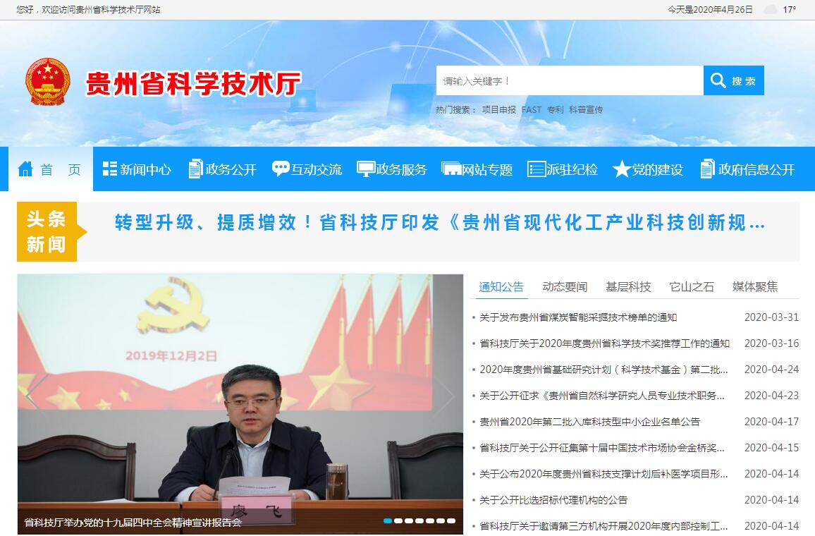 贵州省科学技术厅为贵州省人民政府组成部门,贯彻落实党中央、贵州省委关于科技创新工作的方针政策和决策部署,在履行职责过程中坚持和加强党对科技创新工作的集中统一领导。其主要职责是:1.拟订科技创新驱动发展政策措施以及科技发展、引进国外智力规划和政策并组织实施;2.统筹推进创新体系建设和科技体制改革,会同有关部门健全技术创新激励机制,优化科研体系建设,指导科研机构改革发展,推动企业科技创新能力建设,推进重大科技决策咨询制度建设;3.牵头建立统一的科技管理平台和科研项目资金协调、评估、监管机制,会同有关部门提出优化配置科技资源的政策措施建议,推动多元化科技投入体系建设,协调管理省财政科技计划(专项、基金等)并监督实施;4.拟订基础研究规划、政策并组织实施,组织协调基础研究和应用基础研究,拟订科技创新基地建设规划并监督实施,参与编制科技基础设施建设规划和监督实施,推动科研条件保障建设和科技资源开放共享;5.负责全省科学数据汇聚、管理、应用和共享开放;编制省级重大科技项目规划并监督实施,统筹关键共性技术、前沿引领技术、现代工程技术、颠覆性技术研发和创新,牵头组织重大技术攻关和成果应用示范,协调参与国际大科学计划和大科学工程;6.组织拟订高新技术发展及产业化、科技促进农业农村和社会发展的规划、政策和措施,组织开展重点领域技术发展需求分析,提出重点任务并监督实施;7.牵头技术转移体系建设,拟订科技成果转移转化和促进产学研结合的相关政策措施并监督实施,指导科技服务业、技术市场和科技中介组织发展;8.统筹区域科技创新体系建设,指导区域创新发展、科技资源合理布局和协同创新能力建设,推动科技园区建设;9.负责科技监督评价体系建设和相关科技评估管理,组织开展科技评价机制改革,开展科研诚信建设,组织实施创新调查和科技报告制度,指导全省科技保密工作;10.拟订科技对外交往与创新能力开放合作的规划、政策和措施,组织开展科技合作与科技人才交流,指导相关部门和地方对外科技合作与科技人才交流工作;11.负责引进国外智力工作。拟订重点引进外国专家规划、计划并组织实施,建立外国高水平科学家、团队吸引集聚机制和重点外国专家联系服务机制,拟订出国(境)培训规划、政策和年度计划并监督实施,按规定承担外国人来华工作有关事项;12.会同有关部门拟订科技人才队伍建设规划和政策,建立健全科技人才评价和激励机制,组织实施科技人才计划,推动高层次科技创新人才队伍建设,拟订科学普及和科学传播规划、政策;13.负责贵州省科学技术奖的评审组织工作。14.完成省委、省人民政府与工业和信息化部交办的其他任务。