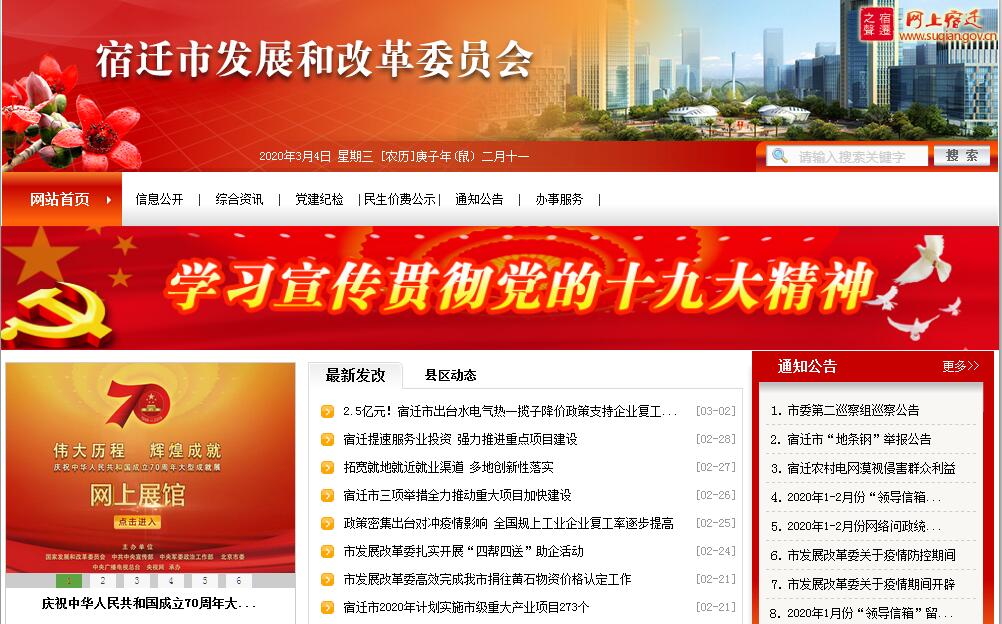 宿迁市发展和改革委员会是人民政府的职能部门,负责发展规划之间的衔接以及发展规划与土地利用总体规划、城乡规划的衔接平衡,负责有关发展规划及计划的审核、评估和管理工作。其主要职责:(一)贯彻执行国民经济和社会发展的战略、方针和政策,研究提出相应的政策措施。研究提出全市经济、社会和城市发展战略,研究制定全市生产力布局规划,组织编制全市国民经济和社会发展中长期规划和重要产业、跨行业发展战略和规划,指导县(区)和市有关部门的中长期规划编制工作。拟订并组织实施市级主体功能区规划、区域规划,依据职责负责编制并组织实施重大基础设施等相关领域专项规划和计划。负责发展规划之间的衔接以及发展规划与土地利用总体规划、城乡规划的衔接平衡,负责有关发展规划及计划的审核、评估和管理工作。(二)研究提出全市年度国民经济和社会发展的主要预期目标,组织编制年度国民经济和社会发展计划报告,并受市政府委托向市人大报告。加强国民经济和社会发展的预测、预警和分析研究,加强经济社会生活中热点难点重点问题研究,针对经济运行中的重大问题及时提出对策和建议。组织开展全市科学发展评价考核工作。研究提出国民经济发展和优化重大经济结构的目标和政策,研究宏观经济运行、总量平衡、经济安全和总体产业安全等重要问题,提出宏观政策调控建议。(三)研究经济体制改革和对外开放的重大问题,组织拟订综合性经济体制改革方案和年度工作要点,协调有关专项改革,负责有关专项改革方案与总体改革方案的衔接。研究并协调解决有关改革的重大问题,提出完善社会主义市场经济体制、政府管理经济方式、以改革开放促发展的建议,协调指导年度重点改革工作,推进有关领域改革,指导有关改革试点工作。指导和协调行业协会发展。(四)负责全市固定资产投资的综合管理,研究提出全社会固定资产投资总规模和投资结构的调控目标、政策与措施,引导民间投资方向。研究提出投资体制改革建议方案并组织实施。负责规划重大建设项目布局和全市重点建设项目投资管理,统筹协调固定资产投资项目的市场准入、财政、金融、环保、土地、资源利用等方面的政策。统筹协调市政府各类投资资金的使用,提出资金年度规模和投向并纳入投资计划管理,安排市级财政性建设资金,指导和监督政策性贷款的使用方向。建立和完善政府投资资金及投资项目监督管理制度,负责审批政府投资项目的项目建议书、可行性研究报告、初步设计及概算,组织竣工验收、后评价工作。按照权限核准、备案固定资产投资项目、企业投资项目和外商投资项目,负责审核转报由省发展和改革委员会或国家发展和改革委员会审批、核准的固定资产投资项目。负责市级政府投资项目代建制工作。组织开展重大建设项目稽察。指导全市工程咨询业发展。(五)推进经济结构战略性调整,组织实施综合性产业政策,负责协调第一、二、三产业发展的重大问题并衔接相关发展规划和重大政策。研究提出农村经济发展战略规划和有关政策建议,综合协调农业和农村经济发展的重大问题。协调解决重大技术装备推广应用等方面的重大问题。组织重大特色产业基地建设,指导协调和组织推进新兴产业发展。负责安排重大工业和高技术产业建设项目,组织拟订高技术产业发展、新兴产业、产业技术进步和产业现代化的战略、规划及重大政策。负责综合协调全市服务业发展工作,组织拟订服务业发展战略、规划和重大政策,协调全市市场体系建设中的重大政策和布局规划。研究提出全市交通发展战略、规划和重大政策,统筹协调基础产业发展中的重大问题。(六)负责社会发展与国民经济发展的政策衔接,组织拟订社会发展战略、规划和计划,综合协调人口和计划生育、科学技术、教育、文化、卫生、体育、广播电视、旅游、政法、民政等领域发展和改革中的重大问题及政策。组织全市社会发展总体水平的评估,研究提出促进社会全面发展的政策建议。研究提出促进就业、调整收入分配、完善社会保障与经济协调发展的政策建议,研究和协调改善民生、推进基本公共服务均等化的有关工作。(七)拟订利用外资和境外投资的战略、规划,提出利用外资总量平衡、结构优化的目标和政策。负责我市全口径外债的总量控制、结构优化和监测,指导和监督国外贷款建设资金的使用。按照权限核准、审批或审核转报外商投资项目、借用国际金融组织及外国政府贷款等国外贷款项目、境外投资项目,负责进口设备免税确认。会同有关部门提出全市开发区的发展战略和总体规划,参与开发区设立审核和政策协调工作。(八)负责重要商品的总量平衡和宏观调控工作。按分工编制全市有关重要商品、原材料进出口总量计划并监督执行,组织实施粮食、棉花进出口计划。牵头拟订现代物流业发展战略、规划,协调流通体制改革中的重大问题。会同有关部门管理市级粮食、食用植物油等储备。(九)研究分析县区经济发展情况,牵头负责全市区域经济协调发展工作,组织编制并实施促进区域发展的战略和政策,研究、协调区域发展的重大问题。组织拟订城镇(市)化发展战略、规划和重大政策,安排区域重大生产力布局。推进流域治理,参与拟订和协调国土整治、
