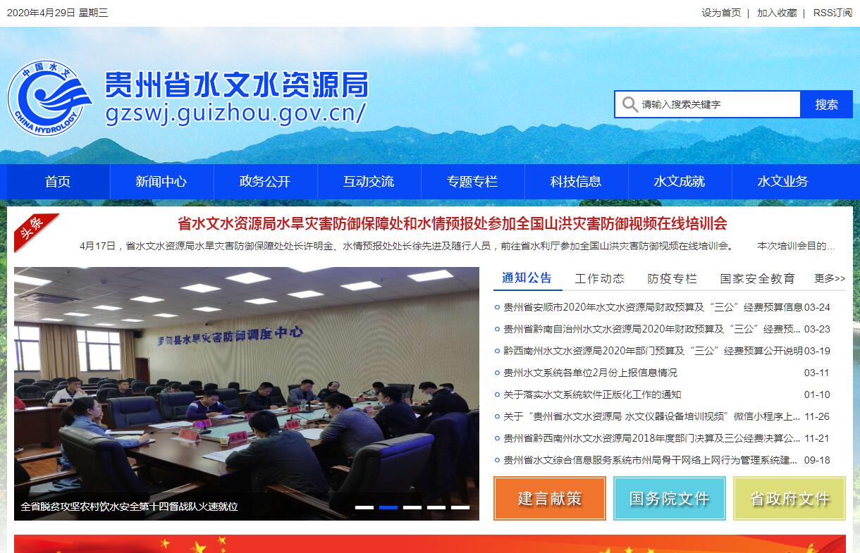 贵州省水文水资源局主要职责:(一) 研究拟定水文事业发展相关的政策,编制水文专业发展规划,经批准后监督实施。(二)负责全省从事水文勘测、水文预报、水文分析与计算、水文水资源调查评价的归口管理,统一管理水文资料的收集、汇总、审定、裁决;组织编制防洪影响评价报告。(三) 组织实施水文行业技术规范和标准;负责本省境内水文水资源监测站网的布局与规划、建设和调整工作。 (四) 承担水文水资源监测、调查、分析计算与评价,编制水资源公报。(五) 负责全省实时水文信息的收集、处理与分析,发布重要水情预警预报,参与防洪调度。(六) 承担水资源保护规划的编制和水功能区的划分,审核水域纳污能力;发布水质公报。(七) 负责防汛水情信息系统、水文数据库、水资源监测评价管理服务系统的开发建设和运行管理。(八) 负责水文勘测站队结合基地建设、水文测报现代化及新技术的开发应用。(九) 协助水行政主管部门管理和保护水资源。参与编制区域水长期供求计划、水量分配方案,参与实施取水许可、水资源费征收制度和有关国民经济发展规划、城乡规划及重大建设项目的水资源论证工作。(十) 在水资源的开发利用和保护中,负责对水量、水质的监测、分析和评价,水域排污总量的监控,水土流失监测、区域或工程项目水土保持方案的编制,以及工程水文计算所需水文资料与成果的审定。(十一) 依照有关行政法规承担水文测报设施保护工作,负责有关水事纠纷、涉水案件裁决所需水 文资料的审定。(十二) 承办省委、省人民政府和省水利厅交办的其它工作。