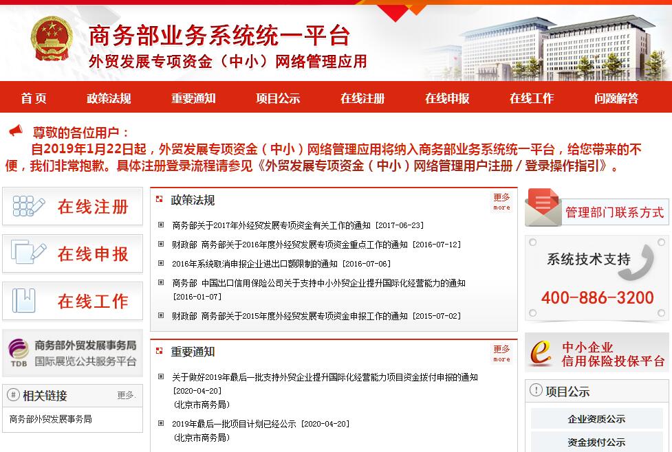 | 网站简介: 外经贸专项资金网络管理系统——支持外贸中小企业开拓市场,由中华人民共和国商务部主办。 |
