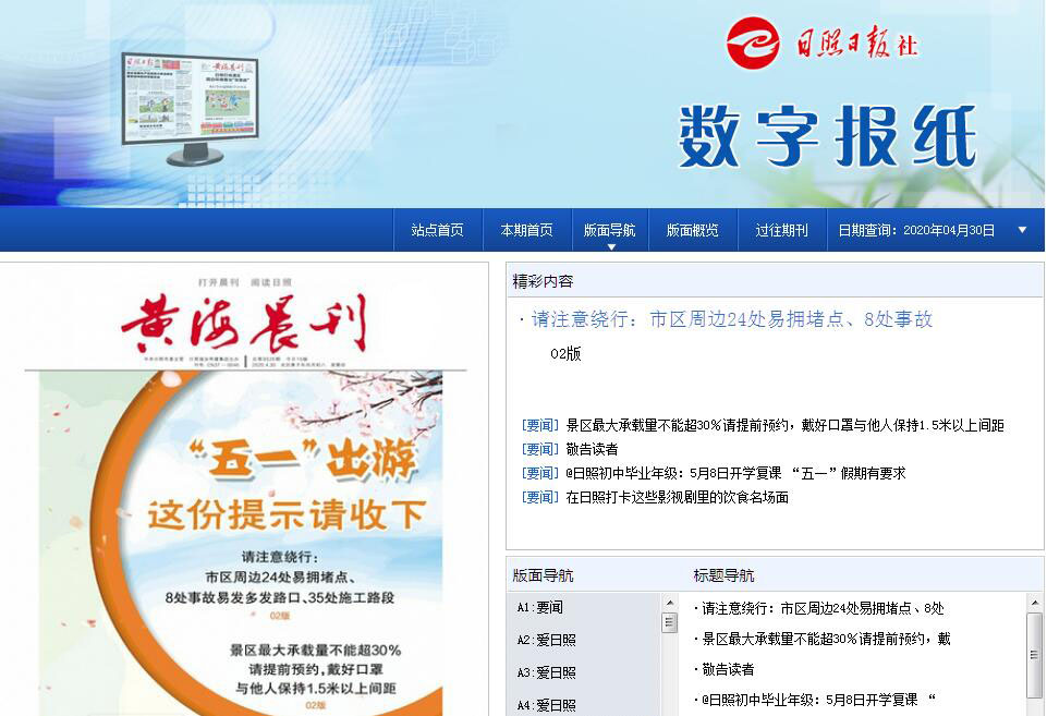 | 网站简介: 黄海晨刊电子版,黄海晨刊多媒体数字报。《黄海晨刊》创刊于2003年,是由中共日照市委机关报,日照日报社主办的一份综合性新闻类都市生活报。黄海晨刊以其晚报风格、可读性强、信息量大、报道全面、贴近百姓、关注生活等特点广受日照市广大读者的青睐。尤其是《今日半岛》和《鲁中南新闻》特刊的推出,极大丰富和充实了《黄海晨刊》的新闻内容,增强了其可读性,受到读者的一致好评。 |