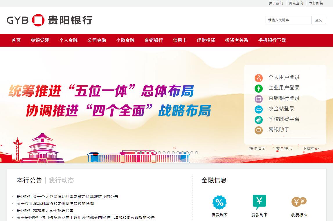 贵阳银行股份有限公司(简称:“贵阳银行”)成立于1997年,注册资本32.18亿元,总行位于贵州省贵阳市。2016年8月,贵阳银行首次公开发行股票在上海证券交易所成功上市,股票代码601997。目前,全行下辖9个省内分行、1个省外分行,机构网点实现贵州省88个县域全覆盖,发起设立贵阳贵银金融租赁有限责任公司和广元市贵商村镇银行股份有限公司,初步形成立足贵州、辐射西南的服务网络。成立20余年来,本行始终秉承“服务地方、服务中小、服务城乡”的办行宗旨,坚持打造特色化、本土化的中小微企业金融服务体系,品牌影响力不断提升。截至2020年3月31日,贵阳银行资产总额5649.31亿元,各项存款余额3324.41亿元,各项贷款余额2125.13亿元。2020年第一季度,贵阳银行实现营业收入41.48亿元,归属于母公司所有者的净利润15.06亿元,基本每股收益0.47元。凭借多年的不懈努力,贵阳银行的发展获得业界广泛认可。在英国《银行家》杂志发布的“2019全球银行1000强排名”中,贵阳银行排名上升至237位;入选英国品牌评估机构“品牌金融”发布的2019年全球银行品牌价值500强,位列第208位;在2019年中国银行业协会发布的中国银行业100强排名第38名;中国商业银行稳健发展能力“陀螺”评价体系中多项指标排名全国城商行前十。