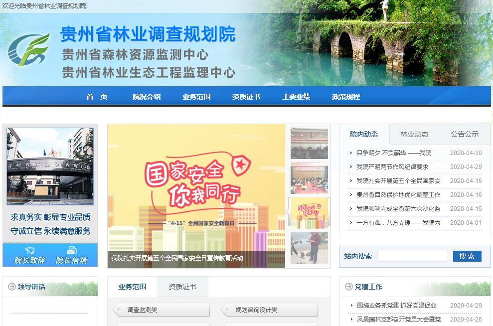 贵州省林业调查规划院始建于1952年,位于风景秀丽的黔灵山公园旁,是贵州省林业厅直属事业单位。1992年增挂“贵州省森林资源监测中心”牌子。2001年加挂“贵州省林业生态工程监理中心”。2012年成立“贵州省石漠化监测中心”、“贵州省湿地资源监测中心”。经过60多年的建设发展,规划院已由一支30多人的林野调查队,发展成为今天拥有180多名职工,集森林资源与生态环境状况调查、监测与评价,石漠化治理状况监测与评价,自然保护区及野生动植物监测与评价、湿地资源调查与监测,林业碳汇计量监测于一体的综合性甲级林业调查规划设计院。业务涵盖林业、风景园林、旅游等行业。具备多项资质,技术力量雄厚。贵州省林业调查规划院现持有国家发展与改革委员会颁发的林业、生态建设和环境工程咨询单位甲级证书(工咨甲12920070009)和市政公用工程风景园林工程咨询单位丙级证书(工咨丙12920070009);中华人民共和国住房和城乡建设部颁发的工程设计甲级证书(A152000690)、工程设计资质证书乙级、丙级(A252000697);中国林业工程建设协会颁发的林业调查规划设计甲A级证书(甲A24-001);贵州省旅游局颁发的旅游规划设计资质丙级证书(旅规丙16-2006)。贵州省土地学会颁发的土地规划机构条件证书乙级(GZTD2011125).2000年加入国际咨询工程师联合会会员。2008年通过ISO9001:2000国际质量体系认证。全院拥有工程技术应用研究员11名、高级工程师45名、工程师76名。其中:有享受国务院政府特殊津贴的专家1位、有硕士以上学位的员工42多位。2013年成功申报贵州省林业调查规划院森林生态监测评估院士工作站(中国工程院尹伟伦院士)和贵州省森林资源监测与评价科技创新人才团队,为我院进一步施行人才强院战略提供了强有力的支撑,为我院向全国一流规划院努力奋进提供了坚实的人才保障。一批朝气蓬勃又具有专业实力的年轻人很快成为主力军,并逐步成长为同行业中有一定知名度的专家和各个专业的带头人,技术力量雄厚,为贵州建设全国一流的现代大林业提供强有力的技术支撑。2016年12月,湿地资源监测与评价人才基地批准并挂牌成立,向行业输出理论功底扎实、业务技能娴熟的湿地资源监测专业人才,为全省湿地资源保护管理决策和政策研究等提供智力支持,为提高全省湿地保护恢复水平、科研监测水平和生态服务功能价值研究提供服务。技术装备先进,服务功能齐全。自建院以来,我院一直把新技术在森林调查中的应用放在重要位置。从对森林资源开发的调查、规划设计,发展到对森林资源与环境的保护、恢复以及可持续经营的调查、规划、设计;从单一的森林资源调查,发展到对森林资源、石漠化、湿地资源、营造林实绩的调查、监测与评价;从运用常规的调查规划手段,发展到遥感、地理信息系统充分结合,利用电子计算机快速处理调查、监测和规划设计成果,实现了由单一的微观型业务向林业建设多方位宏观型的业务转变,从而做到了更快捷、更准确和更全面地为全省林业决策提供科学依据和高质量服务。一是在林业调查规划设计、监测评估方面:为林业生态建设、产业建设区域性规划和林业专项咨询、评估、规划以及公益林建设、管理等提供技术服务,编制林业项目实施方案,开展林业项目工程监理;对林业重点工程实施检查与监督、验收与评估,承担涉及林政资源管理的资源性检查。二是在数字林业建设方面:承担林业“3S”技术的开发与推广应用,改变传统的森林资源监测模式,为全省森林资源管理的科学化、规范化、数字化奠定基础。先后综合运用3S技术、计算机技术、数据库技术、网络技术,完成了森林资源连续清查遥感判读、石漠化监测、湿地资源调查、林地保护利用规划、林地年度变更等数据库建设工作,自主开发了森林资源规划设计调查数据管理信息系统、公益林管理信息系统、营造林综合实绩核查系统等。三是在林业工程服务方面:充分发挥院技术优势,不断开拓市场,大量承接各类林业工程项目的咨询、设计等社会服务业务,积极为基层林业部门提供技术咨询。开展生态旅游规划、风景园林规划设计、森林资产评估、水土保持方案编制、环境影响评价、林业科研、林业标准与技术规程编制等。四是项目成果丰硕:1977-2013年,共有103项科研和勘察设计咨询成果获奖,其中:国家科技进步三等奖1项,优秀设计银奖2项、铜奖1项、全国优秀工程咨询成果奖二等奖2项;省部级科技进步一等奖3项、二等奖4项、三等奖14项、优秀设计咨询一等奖11项、二等奖18项、三等奖22项、其他2项,全面质量管理二等奖1项、三等奖2项;地厅级科技成果二等奖1项,优秀勘察设计一等奖5项、二等奖5项、三等奖9项。我院弘扬“求真务实、守诚立信”价值理念,精神文明建设喜获丰收。先后获得全国林业系统先进集体等集体荣誉23项;贵州省直工委“五好” 党支部等部门荣誉8项;全省优秀共产党员等个人荣誉73项。