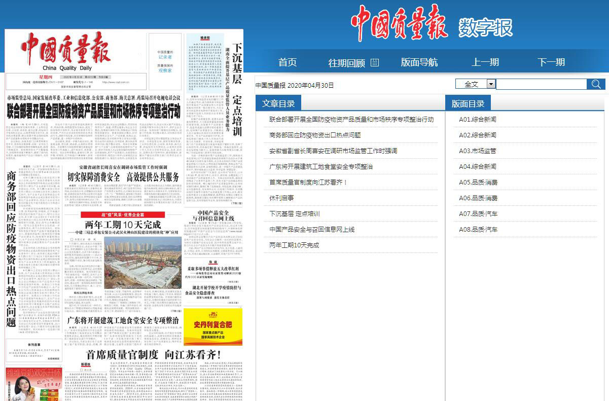 | 网站简介: 中国质量报电子版,中国质量报多媒体数字报。中国质量报刊社由国家市场监管总局主管,1989年创刊。致力于宣传党的路线方针政策、报道市场监管工作、宣传推广质量安全知识、维护消费者合法权益。主办出版 “1报6刊1网1中心”:一报是《中国质量报》,6刊是《市场监管内部参考》、《市场监管总局公报》、《中国质量技术监督》、《中国质量万里行》、《消费指南》、《产品可靠性报告》,一网是中国质量新闻网,一中心是影视中心。是市场监管领域历史悠久、影响力强、权威专业的媒体集团。 |