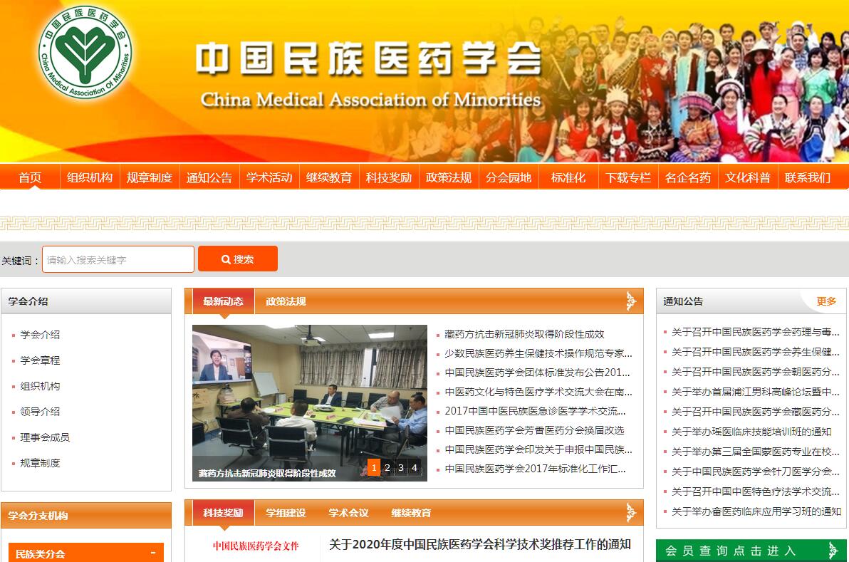 中国民族医药学会,英文名:China Medical Association of Minorities,缩写:CMAM,成立于1994年2月18日,是经民政部批准,由各民族医药工作者、管理工作者以及相关单位专家自愿结成的全国性、非营利性社会团体,是党和政府联系广大民族医药工作者的桥梁和纽带。业务主管单位为国家中医药管理局。学会2012年被民政部评估为3A社团,2017年被国家中医药管理局、国家民族事务委员会评为表现突出的单位。本会认真贯彻落实党的十九大精神,以习近平新时代中国特色社会主义思想为指导,全面贯彻落实党中央、国务院一系列民族政策,坚持“发掘、推广、创新、提高”的办会理念,促进民族医药事业发展。中国民族医药学会业务范围:一、组织民族医药及相关课题研究,引领与民族医药相关内容的科学考察活动;二、组织开展多种形式和内容的民族医药学术交流;三、经政府有关部门批准,组织开展民族医药学术评价、成果评审奖励、表彰优秀科技人才和为学会发展作出贡献的管理工作者,协助政府考核认定民族医药从业人员资质;四、组织编辑出版发行民族医药期刊、图书资料和音像制品;五、围绕行业标准、技术规范制定和政府决策的咨询论证向有关部门建言献策,组织开展产品研发、成果转化和适宜技术推广、成就和产品展陈;六、开展民族医药继续教育、专业培训、咨询服务和科普宣传,提高会员学术水平,发现培养人才;七、密切与国内外相关单位、社团的联系,围绕人类生存环境与健康问题搭建双边或多边平台,开展国际性项目合作、科技交流和文化创意等活动;八、向党和政府如实反映民族医药工作者的意见和诉求,依法维护会员的合法权益,承办政府部门委托的工作任务。