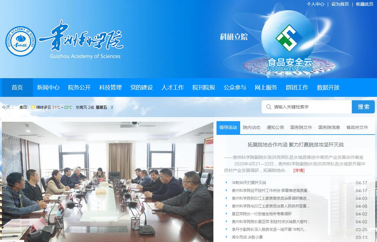 贵州科学院成立于1935年9月,前身为中国科学院贵州分院,历经多次更名、资源整合和隶属关系变动,明确贵州科学院为省人民政府直属正厅级事业单位。2012年7月批准组建贵州省应用技术研究院,与贵州科学院实行两块牌子一个工作班子的管理体制。下设贵州省分析测试研究院、贵州省山地资源研究所等16家科研机构,建成院士工作站1个、博士后工作站1个,省级人才基地2个,省级人才继续教育基地1个。全院拥有大型科研仪器设备1000余台(套)。贵州科学院按照“科研立院、人才兴院、转化强院”的办院理念,大力实施人才引进培养系统工程,着力打造高水平创新创业人才团队。现有在职职工1170余人,管理人员178人,其中省管干部8人、正、副处级干部63人,在职专业技术人员632人,其中高级职称人员占专业技术人员30%以上,国家百千万人才3人、享受国务院特殊津贴6人、省政府特殊津贴5人、省核心专家1人,省管专家5人、博士40人(含在读博士20人)、“西部之光”访问学者8人、贵州省优秀青年科技人才培养对象11人。在深化科技体制改革中凝炼形成了“理化检测与食品安全、新材料产业、冶金化工与过程工业、生物生态资源环境、机电及电子技术、信息技术与互联网技术、新型建材、特色食品开发、旅游资源开发利用、现代咨询设计服务业”等十大优势学科领域,近年来,共承担国家“863”、“973”、国家科技支撑计划、国家自然科学基金等国家级以及各类省部级科技项目2000余项;验收鉴定科技项目1200余项,获得省部级以上科技成果奖300余项;获国家专利300余项,发表论文5000余篇,出版专著150余部,科技成果转化产值已突破10亿元大关。在全省科技创新体系中发挥了重要的支撑和前沿骨干作用,成为全省最大的公共综合科技创新平台。2016年度贵州科学院组织完成申报国家、省部级、地州市级等科研项目246项,其中,国家重点研发计划重点专项1项,国家自然科学基金项目28项。获新立项科研项目137项,资助经费达1.13亿元。公开发表科技论文149篇,核心刊物及以上占46 %。申报贵州省科学技术奖励4项,获奖3项,其中省科技成果转化奖一等奖1项、二等奖1项、省科技进步三等奖1项;获得贵州省优秀工程咨询成果奖5项,其中二等奖3项,三等奖2项。完成科技成果转化产值、科技服务收入4.8亿元。今后一个时期,贵州科学院(贵州省应用技术研究院)将继续秉承“科研立院、人才兴院、转化强院”的办院理念,加大体制、机制、观念、管理创新力度,突出创新驱动发展战略,致力于科技创新体系、成果转化体系建设,加强大数据食品安全与营养云平台、电子商务旅游云、物联网领域、“四个一体化”等方面的平台、体系建设。大力实施人才引进培养系统工程,为奋力开创百姓富、生态美的多彩贵州新未来做出新的更大贡献。