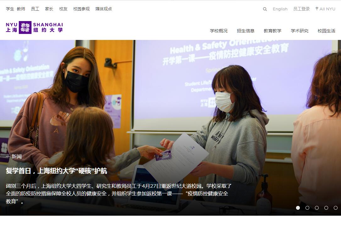 上海纽约大学成立于2012年,是经教育部批准,在上海市及浦东新区政府大力支持下,由华东师范大学和纽约大学合作创办的中国第一所中美合办研究型大学,也是纽约大学全球体系中具有学位授予资格的三大校园之一。上海纽约大学立足中国面向世界,依托纽约大学的先进教育理念和优质教育资源,致力于奉献卓越的教学、科研和社会服务,成为中国高等教育改革当中具有变革意义的“试验田”,培养学生成为具有国际视野、跨文化沟通能力以及创新能力的世界公民。育人理念:好奇严谨,厚德敬业,以世界为课堂,以天下为己任。上海纽约大学秉承博雅教育的理念,顺应经济全球化及科技高速发展迭代的时代特征,贯彻宽口径、厚基础的原则,将通识培养与专业训练的优势相融合,打造独具特色的本科教育模式,在为学生打下扎实专业基础的同时,充分拓宽学术视野,训练审辩思维能力,培育健全的人格,不仅为学生迎接毕业后的挑战做准备,更为终生学习和发挥创造力赋能,构建可以终生受益的成长体系。研究生培养上,学校将在一系列具有影响力的学科和专业领域开展硕士、博士以及非学历教育。所有研究生专业与项目均与纽约大学相关院系合作,充分利用纽约大学全球教育体系内丰富、优质的学术资源,培养地点上包括上海、纽约和全球其他地区。每年有数百名来全球各地的学生在上纽大接受研究生教育的培养,就读于注重专业教育的数据分析与英语教育等领域的硕士专业、和侧重前沿科学研究的化学与神经科学等领域的博士专业。 学生极具活力,背景多元,与本科生一起构成了上海纽约大学高度国际化的学生群体。