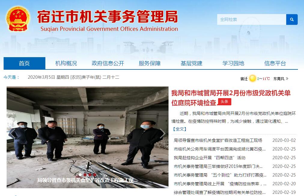 宿迁市机关事务管理局主要职责:(一)负责市级机关事务的管理、保障、服务工作。拟订市级机关事务管理工作规划、制度并组织实施。指导全市政府机关事务管理工作。(二)负责市级机关公务用车的编制、配备、更新、处置工作。(三)负责市级机关行政用房的基建投资职能,制订相关制度并组织实施。归口负责市级机关行政办公用房项目初审、统一规划、建设和集中管理工作,负责市级机关行政用房配置和管理相关工作。负责市级机关及所属单位用地管理工作。负责市级机关人民防空工作。(四)负责市级机关住房制度改革工作,拟订住房制度改革实施方案、住房保障和管理制度并组织实施。负责市级机关职工集中住宅的建设和管理工作,指导市级机关职工集中住宅区物业管理工作。(五)负责市级公共机构节能管理工作。负责推进、指导、协调、监督全市公共机构节能工作。(六)拟订市级领导服务保障有关制度并组织实施。负责指定范围的市级领导以及有关服务对象的生活服务管理工作。(七)指导和协调市级机关绿化、爱国卫生、安全等工作。(八)会同有关部门拟订市级机关后勤体制改革措施、制度并监督实施。指导市级机关后勤服务单位业务工作。(九)承办市委、市人大、市政府、市政协交办的其他事项。
