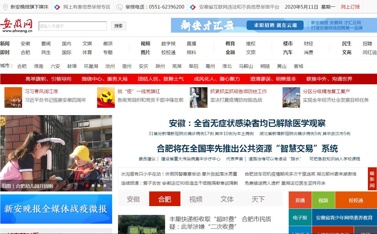 安徽网(www.ahwang.cn)是经安徽省互联网宣传管理办公室批准建设的,由“中国十大晚报”——新安晚报重点打造,是安徽省第一城市生活门户网站,是安徽区域最权威、最具公信力、最有影响力的网络媒体之一。省委宣传部、省网宣办将安徽网定位为省属四大新闻网站之一。安徽网原名新安传媒网,2010年9月9日正式上线。2012年7月,经省网宣办批准,改为现名。更名、改版后,安徽网定位更加精准,页面更加活泼,服务更加细致,影响力、号召力进一步增强。新闻、资讯、互动、服务品质进一步提升。安徽网的建设得到省网宣办等部门的大力支持,是安徽对外宣传的新阵地、新窗口。安徽网先后与新浪、腾讯、等门户网站签订协议,大量新闻被新华网、人民网、新浪、腾讯等网站转载。同时,安徽网还与省内的厅局委办、市县级政府网站建立了合作关系。2012年安徽网加入中国城市新闻网站联盟,与国内100多家新闻网站建立了合作关系。 安徽网立足安徽放眼全球,是安徽省区域新闻第一发布平台,依托“安徽第一报”新安晚报20年积聚的雄厚的专业编采力量,通过文字、图片、音视频等多种方式,传播最新、最快的区域新闻。目前已成长为安徽区域最权威、最具公信力、最有影响力的网络媒体之一,得到网民的充分认可。 获得2013年“传媒中国年度十大品牌价值新闻网站”、2013年全国地方网站最佳本土传播力品牌奖 、2012年中国互联网品牌大奖(第三届)“全国地方网站十佳特色品牌奖”、 2011年中国传媒大会“金长城传媒奖·2011中国年度新锐网络媒体”、2013年安徽省直“青年文明号”、《直播安徽》栏目获2012年安徽新闻奖一等奖等殊荣。安徽网是安徽人身边的保姆网站,发挥其与新安晚报“报网互动”的强大优势,采集和发布民众最关心的生活资讯、商业资讯,为网友提供温暖、周到、贴心的服务。 安徽网负责运营的@新安晚报、@安徽网官方微博影响力,在新浪、腾讯中位居安徽平面媒体第一,《新安晚报》官方微博@新安晚报进入全国晚报官方微博十强。同时,新安晚报官方微信、APP等移动应用,在省内位居前茅,呈突飞猛进的发展势头。