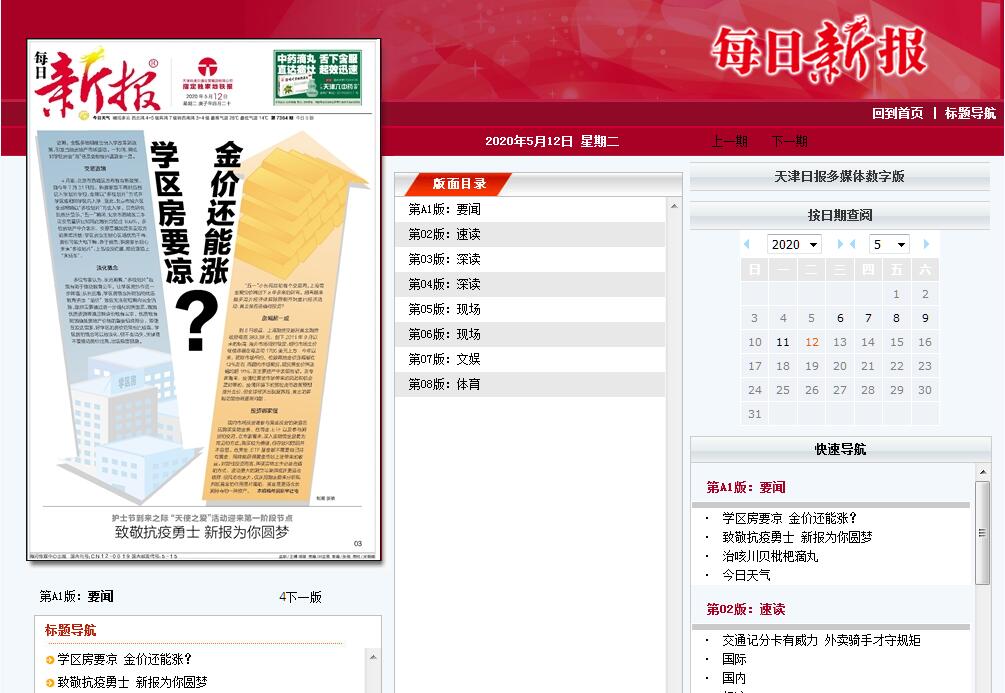 | 网站简介: 每日新报电子版,每日新报多媒体数字报。《每日新报》创刊于2000年元月1日,是天津地区唯一的都市早报,天津日报报业集团的主力媒体,已跻身世界日报百强行列,拥有全国范围的影响力。《每日新报》为加长型的四开日报,双面彩色印刷,日常每天出版量为32至96版之间,平均64版左右。 |