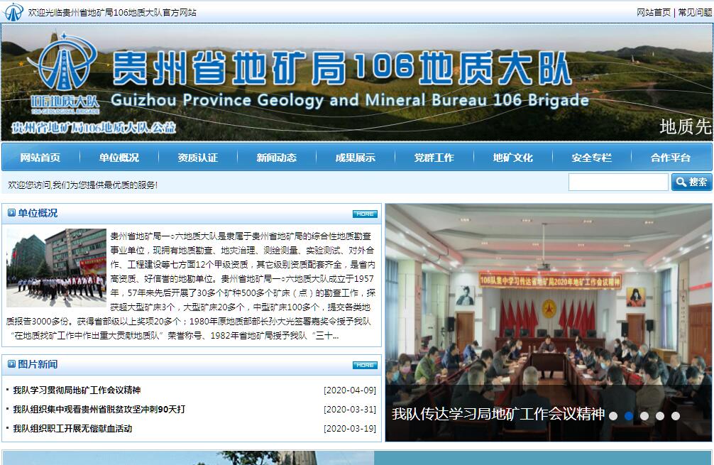 贵州省地矿局一〇六地质大队(以下简称106队)成立于1957年,是隶属于贵州省地矿局的综合性地质勘查事业单位。106队资质及相关质量、安全体系认证齐全,是省内高资质、好信誉的国有专业队伍。在地质勘查、地质灾害防治、测绘测量、实验测试、对外承包工程等领域都取得良好的工作业绩及社会效益。获得省部级以上奖项20余个。106队现拥有地质勘查、地质灾害防治、测绘测量、实验测试、岩土工程勘察、地基与基础工程专业承包、境外承包工程、工程监理等七方面12个甲级、17个乙级、省级或二级资质、1个丙级资质。人才队伍强大,拥有教授级高工8人、副高42人、中级职称106人及在读博士、研究生等一大批专业技术人才。并与国内众多高校均有合作。 106队在开展相关业务活动中,遵纪守法,坚持国家和行业标准、规范要求,维护业主利益,将经济效益和社会效益有效结合起来,取得了良好的经济和社会效果。职业信誉度高,多次受到行业主管部门表彰,在为地方经济发展提供资源保障和技术支撑的同时,保持了地矿经济健康稳定可持续发展。贵州汇都地矿集团有限责任公司是106队于2017年3月全资成立的队属集团公司,由5个子公司组成。贵州汇都地矿集团有限责任公司作为该队主要市场经营平台,近年来在新的地勘经济形势下,不断加大市场拓展力度,积极参与市场竞争,规范市场经营管理,以提质曾效为目的,取得了显著成效,同时在大市场环境氛围下,伴随事企分离改革的号角,为事企分离改革奠定了坚实的基础。