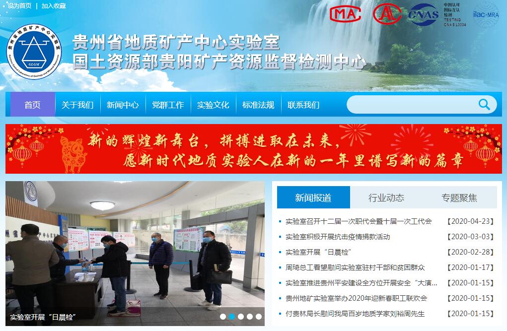 贵州省地质矿产中心实验室始建于1956年,是贵州省地质矿产勘查开发局下属县处级事业法人单位。1992年经贵州省质量技术监督局批准成立“贵州省矿产品黄金宝石制品质量监督检验站”;2004年经国土资源部考核、审查,批准为“国土资源部贵阳矿产资源监督检测中心”;2010年经贵州省科技厅等部门验收批准,获“贵州省贵金属矿产资源综合利用工程技术研究中心”授牌;2013年获国土资源部“国土资源科普基地(科研实验类)”授牌;2018年经贵州省质量技术监督局批准成立“贵州省贵金属及珠宝检验检测中心”和“贵州省水质检验检测中心”。实验室于1991年在贵州省率先通过国家级计量认证;2004年在贵州省率先获得岩矿测试、岩矿鉴定、选冶加工试验甲级地质勘查资质;2007年起获得中国合格评定国家认可委员会(CNAS)实验室认可证书,获得中国地质调查局全国地下水污染调查评价样品无机分析测试资格;2008年,通过ISO9000质量管理体系认证;2011年起获得中国地质调查局生态地球化学调查样品测试资格;2012年通过食品检验机构资质认定;2015年,获得环境样品、农产品省级资质认定证书,同年通过部级质检中心增项纳入到国家级资质认定证书中;2017年首批入选全国土壤污染状况详查实验室名录。实验室人员结构合理,现有各类技术及管理服务人员90余人,其中工程技术应用研究员4人、高级工程师等23人;博士2人,另2人在读、硕士38人另7人在读;有贵州省地矿局核心专家2人,入选贵州省地矿局科技创新人才培养工程领军人才2人、杰出人才2名、优秀人才7名。实验室仪器设备先进齐全,现有专业仪器设备500余台套,拥有X射线衍射仪、X射线荧光光谱仪、电感耦合等离子体质谱仪、全谱直读等离子体发射光谱仪、气相色谱质谱仪、液相色谱仪、离子色谱仪、红外光谱仪、阴极发光仪、显微分光光度计、偏反光显微镜等用于常量、微量、痕量成分分析及鉴定的国际先进水平检测设备,大中型仪器设备均配备中高级专业技术人员从事应用研究和管理,技术应用能力和使用效率居省内前列,连续多年获得省市大型仪器共享平台奖励。实验室长期致力于岩矿测试、水质分析、煤质分析、岩矿鉴定、选冶加工试验、贵金属珠宝检测等实验测试工作,拥有雄厚的技术力量、科学规范的管理体系,以“准确检测,诚信天下”享誉社会,是贵州省地质勘查、矿产资源开发、国土资源管理、产品质量监督的技术支撑单位,六十多年来,承担了大量的基础性、公益性、战略性地质调查项目样品的分析测试工作,同时,承担了地下水、环境水、饮用水等水质检测检验,贵金属饰品检测,岩矿和宝玉石鉴定,矿物赋存状态研究,矿产资源选冶试验,综合利用工程技术研究等。近年来,在以“生态优先,绿色发展”为主题的走向生态文明的新时代,贵州省提出用三年时间集中打好蓝天保卫、碧水保卫、净土保卫、固废治理、乡村环境整治五场标志性战役,解决好生态环境突出问题。要推进绿色化,大力发展绿色农业、绿色制造业、绿色服务业、绿色金融,加快构建生态经济体系。这给实验室带来了发展的大好机遇;实验室着力抓重点、强弱项、补短板,不断适应新时代对地矿实验工作的新要求,推进转型升级发展,以贵州省耕地质量地球化学调查、全国土壤污染状况详查项目等重点工作为抓手,不断加强资质能力建设,优化人才结构,改进测试技术方法,为更好地服务于贵州省经济社会的发展奠定坚实的基础。