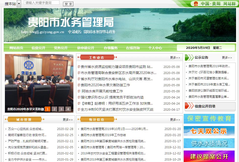 贵阳市水务管理局是市人民政府工作部门,为正县级,加挂贵阳市两湖一库管理局牌子(以下简称市水务局〈市两湖一库管理局〉)。贵阳市水务局(市两湖一库管理局)贯彻落实党中央、省委和市委关于水务工作的方针政策和决策部署,在履行职责过程中坚持和加强党对水务工作的集中统一领导。其主要职责是:(一)负责保障水资源的合理开发利用。依法拟订水务发展总体规划和政策,起草有关地方性法规、政府规章草案,组织编制全市水资源规划、重要江河湖泊综合规划等重点水利规划,依法负责防洪规划和 "两湖一库"保护规划的编制。(二)负责生活、生产经营和生态环境用水的统筹和保障。组织实施最严格水资源管理制度,实施水资源的统一监督管理,拟订全市和跨区 (市、县)区域水中长期供求规划、水量分配方案并监督实施。负责重要流域、区域以及中小型调水工程的水资源调度。组织实施取水许可、水资源论证和防洪论证制度,指导开展水资源有偿使用工作。指导水利行业供水和乡镇供水工作。协助开展黑臭水体整治工作。(三)按规定制订水务工程建设有关制度并组织实施;按照规定权限协助开展审批、核准规划内及年度计划规模内固定资产投资项目;负责提出水务固定资产投资、市级水务建设投资安排建议并负责项目实施的监督管理。(四)负责水资源保护相关工作。组织编制并实施水资源保护规划。协助做好集中式饮用水水源地保护有关工作。指导地下水开发利用和地下水资源管理保护相关工作。组织指导地下水超采区综合治理。(五)负责节约用水工作。拟订节约用水政策,组织编制节约用水规划并监督实施,组织拟订地方性标准。组织实施用水总量控制等管理制度,指导和推动节水型社会建设工作。(六)负责城市供水安全保障。负责水务企业的行业管理,负责水务行业的特许经营管理;依法负责原水、供水水质的监督管理工作。(七)依法负责市级、指导区 (市、县)城镇污水处理行业的特许经营管理;负责市政府投资的污水处理厂及再生水厂的建设与运行监管工作;指导监督全市污水处理厂及再生水厂的建设与运行管理。(八)负责水利设施、水域及其岸线的管理、保护与综合利用。组织指导水利基础设施网络建设。指导江河湖泊的治理、开发和保护。指导河湖水生态保护与修复、河湖生态流量水量管理工作。(九)指导监督水利工程建设与运行管理。组织实施跨区域跨流域的重要水利工程建设与运行管理。组织提出并协调落实中小型水利工程运行和后续工程建设的有关政策措施,指导监督水利工程安全运行,组织水利工程验收有关工作,督促指导区 (市、县)水利工程建设。(十)负责水土保持工作。拟订水土保持规划并监督实施,组织实施水土流失的综合防治、监测预报并定期公告。负责生产建设项目水土保持监督管理工作,指导重点水土保持建设项目的实施。(十一)指导农村水利工作。组织开展中型灌排工程建设与改造。指导农村饮水安全工程建设管理工作,负责农村千人以下饮用水水源地保护。指导节水灌溉有关工作。指导农村水利改革创新和社会化服务体系建设。指导农村水能资源开发、小水电改造和水电农村电气化工作。(十二)负责落实综合防灾减灾工作中涉及水务的相关要求,组织拟制行业内洪水干旱灾害防治规划并指导实施。组织拟订全市江河湖泊和水利工程的防御洪水抗御旱灾调度及应急水量调度方案,按程序报批后监督实施;承担本行业防御洪水应急抢险的技术支撑工作;承担极端天气期间全市水利工程调度工作。(十三)协调构建河 (湖)长组织体系,明确河 (湖)长工作职责,建立河 (湖)长制相关制度;承担市河 (湖)长制办公室日常工作,协调推进河 (湖)长制各项工作任务落实。(十四)依据法规授权,负责行使 "两湖一库"管理范围内环保、规划、水利、林业、绿化、建设、农业 (含渔业)、卫生方面的有关行政职能。对 "两湖一库"水资源依法实施统一调配,做好 "两湖一库"管理范围内水资源保护、水污染防治、生态环境保护等相关工作。(十五)负责重大涉水违法事件的查处,协调跨区 (市、县)水事纠纷,指导全市水政监察和水行政执法。组织指导水利行业管理的水库、水电站大坝和管理权限内农村水电站及其配套电网的安全监管。指导水利建设市场的监督管理,组织实施水利工程建设的监督。(十六)结合部门职责,做好军民融合、扶贫开发等相关工作;加大科技投入,提高科技创新能力,为推进创新驱动发展提供保障;负责本部门、本行业领域的安全生产和消防安全工作;按规定做好大数据发展应用和政务数据资源管理相关工作,依法促进部门政务数据资源规范管理、共享和开放。(十七)完成市委、市政府和省水利厅交办的其他任务。