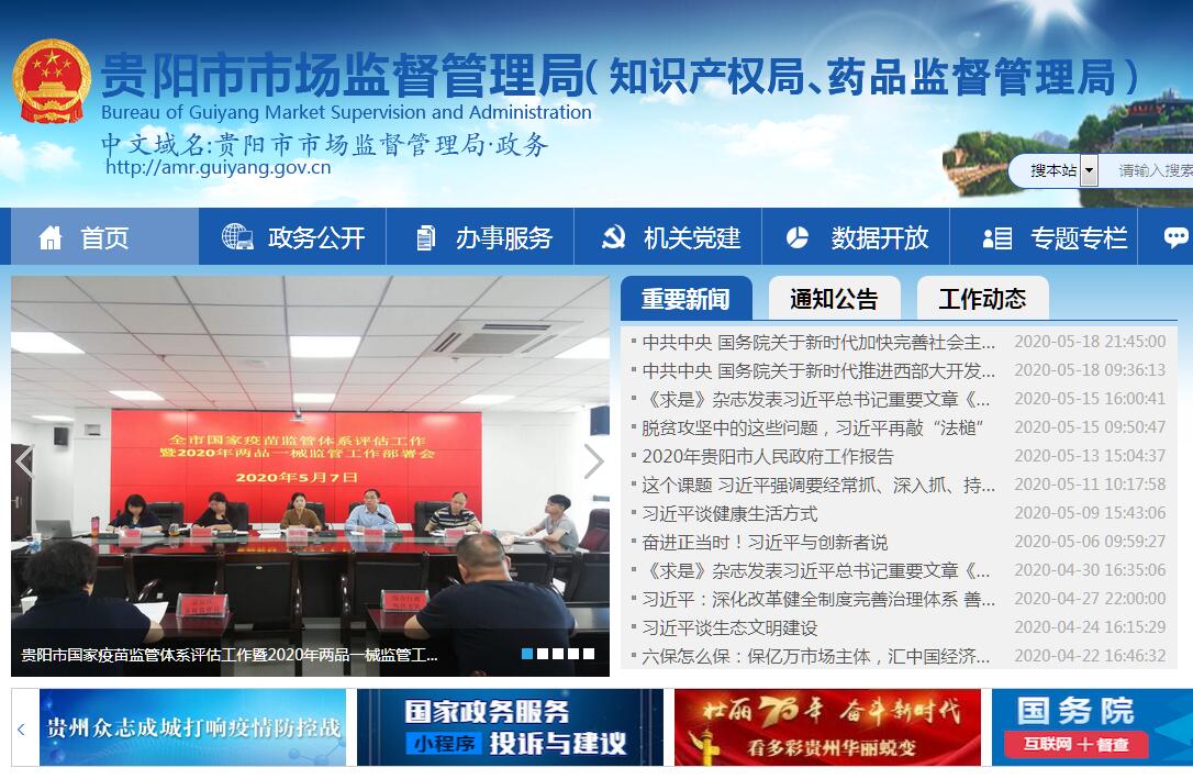 贵阳市市场监督管理局主要职责:(一)负责市场综合监督管理。起草市场监督管理、知识产权、药品监督管理有关地方性法规、规章和政策,组织实施质量强市战略、知识产权强市战略、食品药品安全战略和标准化战略,拟订并组织实施有关规划,规范和维护市场秩序,营造诚实守信、公平竞争的市场环境。(二)负责市场主体统一登记注册。承担并指导各类企业、从事经营活动的单位以及外国(地区)企业常驻代表机构等市场主体的登记注册工作,指导农民专业合作社、个体工商户的登记注册工作,建立市场主体信息公示和共享机制,依法公示和共享有关信息,加强信用监管,推动市场主体信用体系建设。(三)负责全市市场监管领域综合行政执法工作。负责市、县两级市场监管综合行政执法队伍建设,推动实行统一的市场监管,规范市场监管(知识产权、药品监管)行政执法行为;承担法律法规及相关规定明确的市级行政执法事项,查处重大复杂案件和跨区域案件;具体负责贵阳经济技术开发区、贵阳国家高新技术产业开发区、贵州双龙航空港经济区、贵阳综合保税区市场监管领域的综合行政执法工作;指导各区(市、县)市场监管领域综合行政执法工作。(四)负责监督管理市场秩序。依法监督管理市场交易、网络商品交易及有关服务的行为,负责推进公平竞争审查制度落实。贯彻执行价格法律、法规和政策,组织指导查处价格收费违法违规、不正当竞争、违法直销、传销、侵犯商标专利知识产权和制售假冒伪劣等行为。指导广告业发展,监督管理广告活动。组织指导查处无照生产经营和相关无证生产经营行为。负责全市消费环境建设,组织开展消费者权益保护工作,指导贵阳市消费者协会开展消费维权工作。(五)负责宏观质量管理。拟订并组织实施质量发展的制度措施。统筹全市质量基础设施建设与应用,会同有关部门组织实施重大工程设备质量监理制度,组织重大质量事故调查,实施缺陷产品召回制度,监督管理产品防伪工作。(六)负责产品质量安全监督管理。管理产品质量安全风险监控、市级监督抽查工作。组织实施质量分级制度、质量安全追溯制度。负责工业产品生产许可管理。负责纤维质量监督工作。(七)负责特种设备质量安全监督管理。综合管理特种设备安全监察、监督工作,监督检查高耗能特种设备节能标准和锅炉环境保护标准执行情况。(八)负责食品安全监督管理综合协调。组织制定全市食品安全重大政策并组织实施。负责食品安全党政同责考核。负责食品安全应急体系建设,组织指导重大食品安全事件应急处置和调查处理工作。建立健全食品安全重要信息直报制度。承担市人民政府食品安全委员会日常工作。(九)负责食品安全监督管理。依法组织实施食品生产经营许可,建立覆盖食品生产、流通、消费全过程的监督检查制度和隐患排查治理机制并组织实施,防范区域性、系统性食品安全风险。推动建立食品生产经营者落实主体责任的机制,健全食品安全追溯体系。组织开展食品安全监督抽检、风险监测、核查处置和风险预警、风险交流等工作。组织实施食盐质量安全监督管理。组织实施特殊食品监督管理。(十)负责药品(含中药、民族药,下同)、医疗器械和化妆品安全监督管理。组织起草贵阳市地方性法规、规章草案,拟订监督管理制度、规划并监督实施。负责药品零售企业行政许可工作。(十一)负责监督实施国家药典等药品、医疗器械、化妆品标准,监督实施分类管理制度。配合实施国家基本药物制度。(十二)负责药品、医疗器械和化妆品质量管理。依职责监督指导实施经营、使用质量管理规范。(十三)负责药品、医疗器械和化妆品上市后风险管理。组织开展药品不良反应、医疗器械不良事件和化妆品不良反应的监测、评价和处置工作。依法承担药品、医疗器械和化妆品安全应急管理工作。(十四)负责组织实施药品、医疗器械和化妆品监督检查。依职责查处药品、医疗器械和化妆品经营、使用环节的违法行为。(十五)负责药品、医疗器械和化妆品监督管理领域对外交流与合作。(十六)负责统一管理计量工作。推行法定计量单位和国家计量制度,管理计量器具及量值传递和比对工作;指导监督规范商品量和市场计量行为。(十七)负责统一管理标准化工作。依法组织拟订市级地方标准,协调指导和监督团体标准、企业标准制定工作。组织参与制定国际标准、国家标准、省级地方标准工作,组织采用国际标准。(十八)负责统一管理检验检测工作。推进检验检测机构改革,规范检验检测市场,完善检验检测体系,指导协调检验检测行业发展。(十九)负责统一管理、监督和综合协调认证认可工作。组织实施国家统一的认证认可和合格评定监督管理制度。(二十)负责拟订和组织实施知识产权强市建设的政策措施和发展规划。推进知识产权创造、保护和运用的管理政策和制度的落实。推进知识产权公共服务体系建设,组织开展商标、专利等知识产权信息的传播利用。(二十一)负责保护知识产权。组织实施保护商标、专利、原产地地理标志等知识产权制度。研究鼓励新领域、新业态、新模式创新的知识产权保护、管理和服务政策。组织实施知识产权保护体系建设方案,推动知识产权保护体系建设。负责指导商标、专利执法工作,指导知