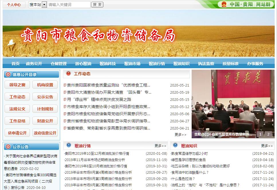 贵阳市粮食和物资储备局主要职责:(一)起草全市粮食流通和物资储备管理的地方性法规、规范性文件草案。贯彻执行国家粮食流通体制改革的实施方针、政策,研究提出市级粮食流通和物资储备体制改革方案并组织实施。(二)拟订市级储备发展规划和重要物资储备规划、储备品种目录,并组织实施。根据市级储备发展规划和品种目录,组织市级重要物资和应急储备物资的收储、轮换和日常管理,落实有关动用计划和指令。指导各区(市、县)粮食、重要物资和应急储备物资的收储、轮换和日常管理工作。(三)按规定管理市级粮食、食糖、药品、食盐、救灾物资等储备,并结合实际适时做出调整,负责市级储备粮等行政管理。监测全市粮食和重要物资供求变化并预测预警,承担全市粮食流通宏观调控的具体工作。对粮油的“购、销、调、存、加”进行宏观管理,协调本市所辖区(市、县)间粮食余缺调剂。承担全市粮食安全责任制考核工作。(四)组织实施国家、省、市粮食和物资储备仓储管理有关技术标准和规范,负责市级粮食流通、加工行业安全生产工作的监督管理,承担市级物资储备承储单位安全生产的监管责任。负责本部门、本行业领域的安全生产和消防安全工作。(五)根据全市储备发展规划,统一负责储备基础设施建设和管理。拟订市级储备基础设施、粮食流通设施建设规划并组织实施,管理有关储备基础设施和粮食流通设施投资项目。(六)负责对管理的政府储备、企业储备以及储备政策落实情况进行监督检查。执行国家、省粮食收购政策,负责粮食收购许可证办理工作。配合有关部门做好粮食收购资金封闭运行和价格管理工作。负责全市粮食流通监督检查,负责粮食收购、储存、运输环节粮食质量安全和原粮卫生的监督管理,组织实施全市粮食库存检查工作。(七)负责全市粮食流通行业管理,拟订行业发展规划并组织实施,组织实施粮食流通和物资储备有关标准、粮食质量标准和有关技术规范。(八)承担保障驻筑部队军粮供应工作,指导各区(市、县)军粮供应队伍和供应网络建设。指导灾区、水库移民、缺粮地区和贫困地区的粮食供应工作。(九)贯彻实施国家粮食财务、统计、审计制度,指导、监督本系统财务、统计、审计工作。开展社会粮食供需平衡调查统计工作。(十)结合部门职责,做好军民融合、扶贫开发等相关工作。加大科技投入,提高科技创新能力,为推进创新驱动发展提供保障。按规定做好大数据发展应用和政务数据资源管理相关工作,依法促进部门政务数据资源规范管理、共享和开放。(十一)承办市委、市政府和上级部门交办的其他任务。