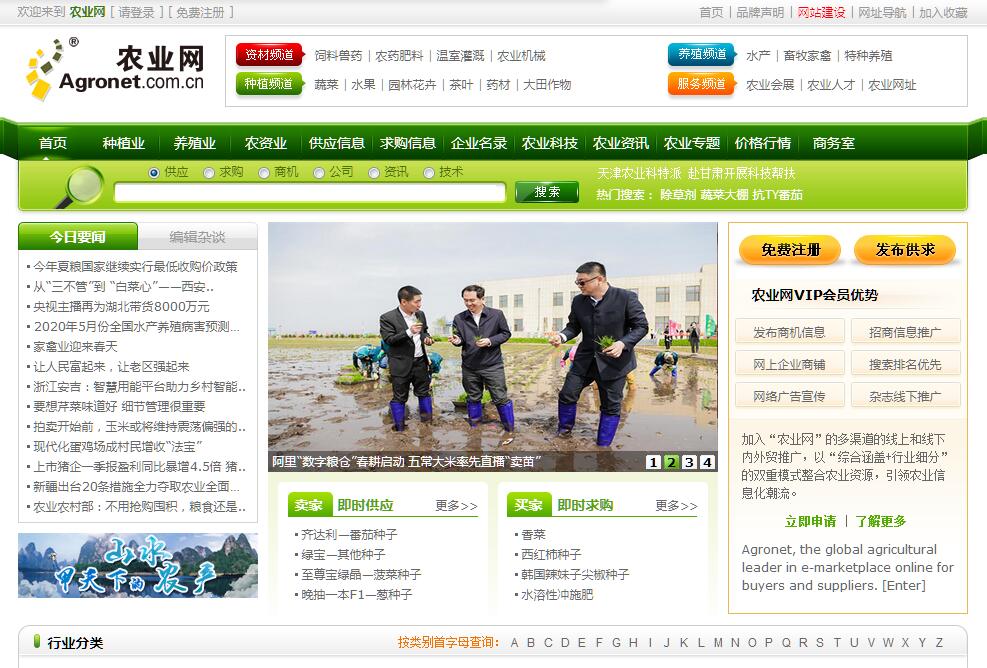农业网,是一家集互联网信息、电子商务和线下服务于一体的农业专业网站。成立十年来,以“综合涵盖+行业细分”的双重模式整合农业资源,引领中国农业信息化的潮流,在国内农业电子商务领域独树一帜!浙江瞬时达网络有限公司(农业网)成立于1997年,是一家集互联网信息、电子商务和线下服务于一体,具有高知识含量、高附加值和高成长性的信息服务高科技企业。2013年,公司被认定为杭州市高新企业;2014年被认定为浙江省科技型中小企业;2017年被浙江省电子商务促进会评定为浙江省4A级电子商务企业。公司凭借一支十余年从事互联网行业的专业化队伍和独特的经营理念,在网络经济的浪潮中脱颖而出,成功创造开发了国内知名农业站点——农业网,服务农业产业链各个环节,在我省“三农”信息化和农业电子商务领域独树一帜,2012年,农业网平台被省商务厅、浙江电子商务工作领导小组办公室认定为首批“浙江省重点第三方电子商务服务平台”。继往开来,公司将集中全力专注于信息服务、电子商务和物流配送等全产业链各个领域的整合服务,实现 “互联网信息服务”与“电子商务服务”相结合、“线上服务”与“线下服务”相结合的发展格局,打造“涵盖综合+专业精准”的“大农网”,不断促进和引领农业信息化。