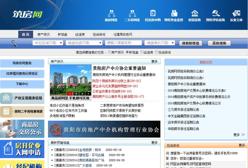 | 网站简介: 筑房网(贵阳住宅与房地产信息网)是贵阳市住建局旗下网站,提供全市商品房网签、预告登记办理等网上业务通道和房产咨询、贵阳城市三维仿真地图等专业服务! |