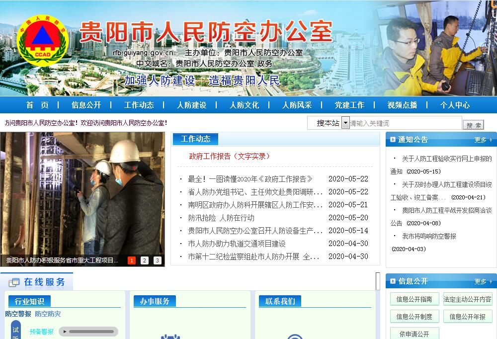 贵阳市人民防空办公室主要职责:(一)贯彻执行国家人民防空工作方针、政策和法律法规;起草人民防空地方性法规、规章和实施办法并组织实施;指导监督全市人民防空行政执法工作。(二)拟订全市人民防空事业发展战略与中长期规划和年度计划并组织实施。(三)编制并组织实施全市人民防空建设规划;制订全市人民防空建设与城市建设相结合规划;审核、监督全市城市总体规划中的人民防空事项;监督检查城市和重要经济目标的人民防空建设。(四)负责人民防空组织指挥工作;组织开展防空防灾一体化建设;拟订和实施全市防空袭预案、人口疏散和各项保障方案;组织和指导城市防空袭演练;负责市级人民防空指挥所建设和监督管理;会同有关部门组织人口疏散地域建设。(五)组织实施全市人民防空通信警报建设和监督管理,开展人民防空信息化建设;协调利用邮电、军队通信网以及其他部门专用通信网保障人民防空通信警报工作;指导监督人民防空通信值勤和通信警报网的维护管理。(六)负责组织和协调战时发放空袭警报和实施灯火管制;组织人口与战备物资的疏散和隐蔽工作;配合要地防空和城市防卫,组织消除空袭后果,协助有关部门开展恢复正常的生产和生活秩序。(七)组织开展人民防空宣传教育工作,普及人民防空知识和技能;指导人民防空专业队伍的建设和训练;组织人民防空专业队伍完成政府赋予的有关抢险救灾任务。(八)拟订市人民防空工程建设总体规划和年度计划并组织实施;负责全市人民防空工程(含结合地面建筑修建战时可用于防空的地下室)建设项目、设计的审批、质量监督、竣工验收和管理工作;检查监督城市地下空间开发建设中的人民防空事项。(九)组织监督人民防空工程平战结合的开发利用和管理工作;检查督促人民防空工程平战转换手段的落实。(十)组织开展人民防空的科学技术研究及成果推广应用;组织开展人民防空行业标准化管理和人民防空机关 “准军事化” 建设。(十一)拟订人民防空经费计划;负责防空地下室易地建设费的收取和使用;管理人民防空经费和资产;编制人民防空经费预决算并对经费使用情况进行监督检查;协调和监督人民防空专用设备、器材的生产和供应。(十二)组织开展业务培训,负责机关和所属单位的建设和管理。(十三)指导、检查和帮助区(市、县)人民防空工作。(十四)承办市委、市政府、贵阳警备区及上级业务部门交办的其他事项。