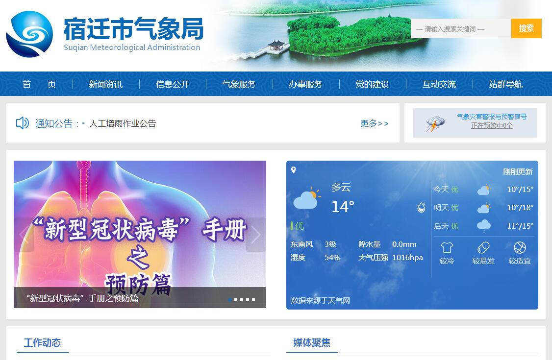 宿迁市气象局机构规格为正处级。其主要职责是:1.负责本行政区域内气象事业发展规划、计划的制定及气象工作的组织实施;对本行政区域内的气象活动进行指导、监督和行业管理。2.组织指导本行政区域内气象灾害防御工作;组织拟订和实施本行政区域的气象灾害防御规划;组织气象灾害防御应急管理工作;管理、制定本行政区域人工影响天气作业方案,在本级人民政府的领导和协调下指导和组织人工影响天气作业;指导城乡气象工作,组织推进农村气象灾害防御体系和农业气象服务体系建设,组织指导信息员队伍建设。3.组织管理本行政区域内雷电灾害防御工作,会同有关部门指导对可能遭受袭击的建筑物、构筑物和其它设施安装的雷电灾害防护装置的检测工作;负责本行政区域内雷电灾害防护装置的设计审核和竣工验收;负责管理本行政区域内的施放气球活动。4.负责向本级人民政府和同级有关部门提出利用、保护气象资源和推广应用气候资源区划成果的建议;组织本行政区域内气候资源的综合调查、区划,指导气候资源的开发利用和保护,组织并审查重点建设工程、重大区域经济开发项目和城乡建设规划的气候可行性论证和气象灾害风险评估。5.负责本行政区域内的气象台站和气象设施的组织建设和维护管理;组织管理本行政区域内气象探测资料的采集、传输和汇交;依法保护气象设施和探测环境;负责审查建设项目大气环境影响评价所使用的气象资料。6.负责本行政区域内的气象监测、预报预警、公共服务管理工作,及时提出气象灾害防御措施,并对重大气象灾害进行评估,为本级人民政府组织防御气象灾害提供决策依据;组织管理本行政区域内气象信息的发布和传播;组织重大活动、突发公共事件气象保障工作;承担重大突发公共事件预警信息发布系统建设及运行维护。7.组织开展气象法制宣传教育,负责监督有关气象法律法规的实施,对违反《中华人民共和国气象法》等法律法规有关规定的行为依法进行处罚,承担有关行政复议和行政诉讼;组织宣传、普及气象科学知识。8.统一领导和管理本行政区域内气象部门的计划财务、机构编制、人事劳动、队伍建设、科研和培训及业务建设等工作;会同县(市)人民政府对县(市)气象主管机构实施以部门为主的双重管理;会同地方党委和人民政府做好当地气象部门的精神文明和思想政治工作。9.承担上级气象主管机构和宿迁市人民政府交办的其他事项。