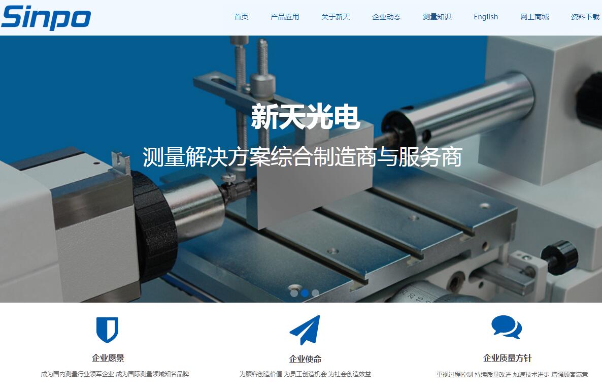 贵阳新天光电科技有限公司(原新天精密光学仪器公司,1966年由上海内迁贵阳组建),位于贵阳国家高新技术开发区内,属国家机电行业大型高新技术企业,一直被列为贵阳市、贵州省及国家重点发展的装备制造企业。公司已通过ISO9001质量管理体系认证及ISO10012测量管理体系认证。历经50年的发展,在世界产业不断升级的过程中,新天光电积极融入世界经济产业链,实施“民族品牌”战略,同时在与跨国公司合作、合资交流中发展和壮大新天产业,成为了世界经济产业链中重要一环。新天光电不断通过技术进步,已形成了具有自身特色的光学及机械精密加工生产体系。公司在国家和省市政府的支持下建立了省级技术中心、光学测量工程技术研究中心、院士工作站、博士后科研工作站等研发平台,通过自身探索与开展广泛合作与交流,增强发展动力。50年来,新天光电不断改革创新,为国家诸多重点工程项目提供了检测装备。新天光电营销网络辐射海内外,在国内各大中城市建立了分公司及办事处,其全资子公司——贵阳新天光电科技进出口有限公司的业务范围辐射至世界五十多个国家和地区。公司产品及服务广泛用于制造业、计量测试院所、科研教学等领域的精密测量、计量测试及量值传递等。新天光电倾力内抓管理,外拓市场,奉行“以人为本”的管理理念和“明星服务”的营销理念,将产品与服务融为一体,不仅为客户提供优质产品,还着力为用户提供检测解决方案。公司秉承“高标准、零缺陷”的质量目标,致力实现“创国内一流企业,树国际知名品牌”的发展目标 。