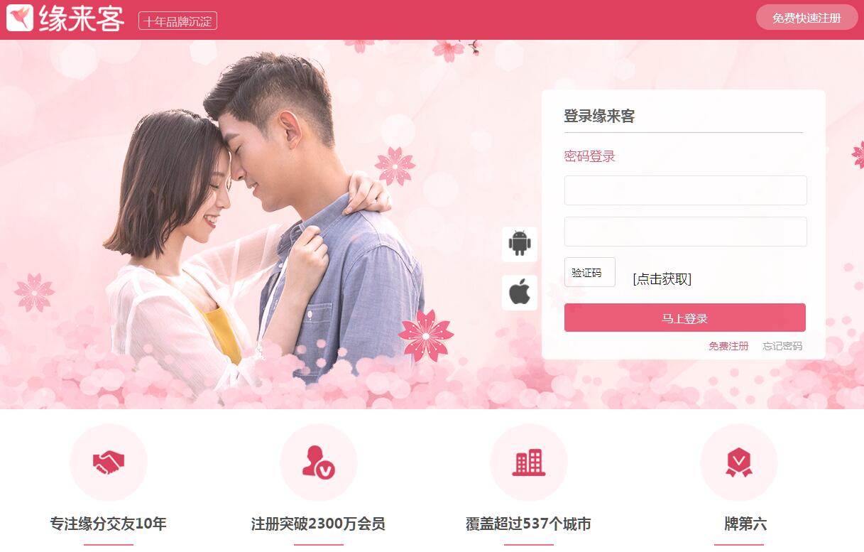 | 网站简介: 杭州朗迈网络科技有限公司旗下品牌缘来客,是大型同城婚恋交友平台,自成立以来,一直致力于都市男女的缘分交友,历经8年的发展,注册会员超过1200万,且保持高速增长,在白领阶层享有良好的知名度和口碑,是国内领先的同城约会网站。网站以“资料真实”、“群体集中”、“服务贴心”三大原则坚持特色交友,全力维护真实、安全、诚信的交友环境,秉持着宁缺毋滥,精确交友的原则,对会员资料的审核和VIP会员的吸纳有着严格的保障机制。在这里,你如同置身于花园中,享受无微不至的温馨交友服务。 |