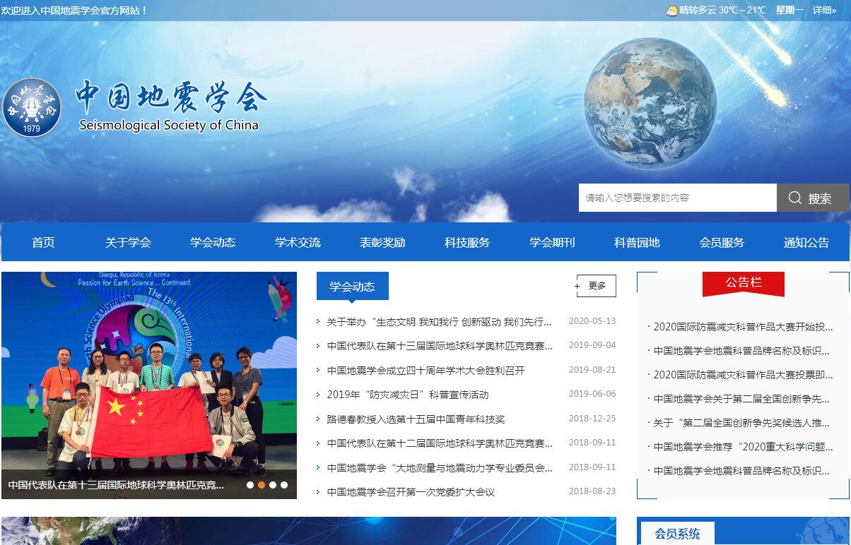 中国地震学会成立于1979年11月21日,是由我国从事地震科技研究和参与我国防震减灾事业的科技工作者自愿结成的、依法登记成立的、具有法人资格的、公益性的、全国性的学术团体,是发展我国地震科技事业的一支重要社会力量,是中国科学技术协会的组成部分。学会宗旨:本会的宗旨是遵守国家宪法、法律、法规和国家政策,遵守社会道德风尚,贯彻“科学技术必须面向经济建设”和“百花齐放,百家争鸣”的方针,贯彻“经济建设同减灾一起抓”的指导思想,团结广大地震科技工作者,大力开展地震科学技术的学术交流和讨论,积极推动地震科学技术的繁荣和发展,发掘和培养优秀青年科技人才,普及地震科学技术知识,坚持实事求是的科学态度和优良学风,弘扬尊重知识、尊重人才的风尚,倡导献身、创新、求实、协作精神,充分发挥在技术政策、法规制定和重大决策中的科技咨询作用,为防震减灾事业做出贡献。本学会接受业务主管单位中国科学技术协会、社团登记管理机关国家民政部的业务指导和监督管理。本会办事机构挂靠在中国地震局地球物理研究所内。学会业务范围:本会的业务范围:(一)围绕地震科技和防震减灾开展学术交流活动, 组织学术讨论会、报告会和各种讲座以及科学考察等活动;(二)编辑出版《地震学报》等学术刊物、科技教材、科技音像制品、科普宣传等资料;(三)开展防震减灾科学普及活动,宣传地震科学技术经验,推广地震科学技术成果,举办有关科技展览;(四)对国家政策制定和国民经济建设发挥科技咨询作用,鼓励会员对防震减灾工作提出建议,做出贡献,经常向有关部门反映科技工作者的意见和呼声;(五)积极开展国际学术交流活动,加强同国外地震科学技术团体和科技工作者的友好往来和合作;(六)促进台湾海峡两岸的学术交往;推动民间的学术交流;促进祖国的和平统一;(七)根据学科发展需要,举办各种培训班和科技考察;努力提高会员的素质和学术水平;(八)接受政府和有关部门委托,承担有关科技服务项目;(九)根据建立社会主义市场经济的需要,发挥学科优势,开展合法经营活动。