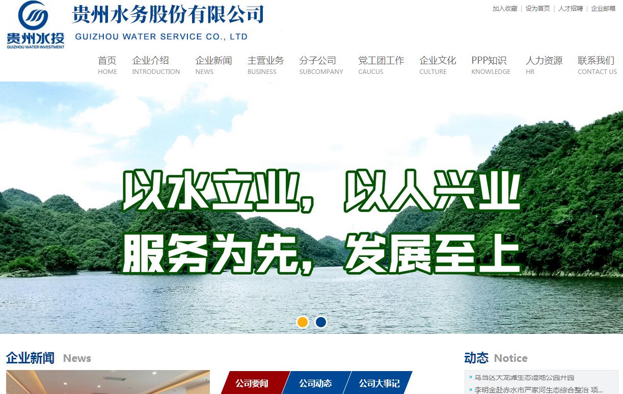 贵州水务股份有限公司由贵州省水利投资(集团)有限公司、贵州水业产业投资基金、上海巴安水务股份有限公司(A股上市公司)采用PPP模式共同出资组建,于2014年12月24日注册成立,注册资本人民币10亿元,是贵州省内第一家从事PPP项目的国有控股专业水务公司。目前,公司拥有全资子公司8家,控股子公司5家,参股子公司3家,现有员工601人。贵州水务股份有限公司秉承贵州省水利投资(集团)有限责任公司“以水立业、以人兴业、服务为先、发展至上”的发展理念,按照省委、省政府和省水利厅的决策部署,不断推进国有企业深化改革,发展混合所有制经济,致力于为改善水环境提供集投资、建设、运营为一体的综合解决方案,成为污水处理、水环境治理等行业的综合运营商。贵州水务股份有限公司成立以来,在省内多个县市区成功运作区域水务一体化项目,投资建设观山湖区小湾河环境综合整治工程PPP项目、赤水市严家河生态综合整治工程PPP项目、乌当区松溪河环溪河水环境综合治理项目、福泉市金山污水厂BOT项目等,有着丰富的投融资经验及PPP模式运作经验。多个PPP项目被列为省级、国家级PPP示范项目,并获得多项国家投资奖励。其中正安县水务一体化PPP项目入选贵州省第一批政府和社会资本合作示范项目;正安县十六乡镇污水处理工程PPP项目入选贵州省第三批政府和社会资本合作示范项目;小湾河PPP项目入选贵州省第二批政府和社会资本合作示范项目,获得贵州省2017年基础设施领域PPP样板工程授牌,并作为贵州省名列前茅的PPP项目入选全国第三批政府和社会资本合作示范项目。成立近5年来,贵州水务股份有限公司抢抓机遇,大力开拓水务一体化和涉水生态环境综合治理业务,为我省经济发展与环境改善双赢作出了积极贡献。下一步,水务股份公司将持续引领全省水务行业,在各市(州)、县(市、区、特区)继续拓展以SPV公司为载体的水务一体化PPP项目,重点打造涉水生态环境综合治理项目,大力开拓工程建设业务,争取实现2020年前上市目标,成为省内第一家水务上市企业。