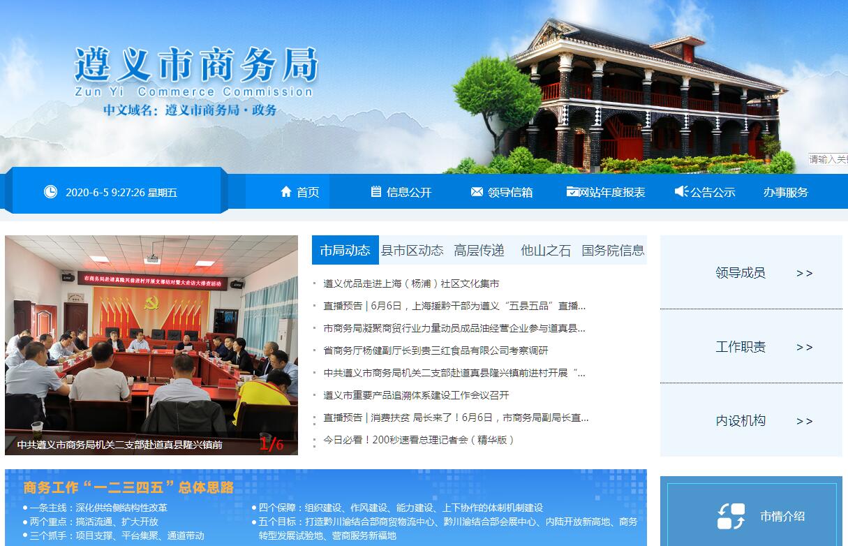 遵义市商务局主要职责:(一)贯彻执行国内外贸易、国际经济合作和外商投资的方针、政策和法律法规,拟订相关政策和管理办法并监督实施。研究区域经济合作、现代流通方式的发展趋势和流通体制改革并提出建议。(二)负责推进全市流通产业结构调整,指导商贸服务业和社区商业发展,提出促进商贸中小企业发展的政策建议。推动流通标准化和连锁经营、商业特许经营、物流配送、电子商务等现代流通方式的发展。(三)负责拟订全市国内贸易发展规划,促进城乡市场发展;提出引导国内外资金投向市场体系建设的建议。指导大宗产品批发市场规划和城市商业网点规划、商业体系建设工作。推进城乡市场体系建设,组织实施农村现代流通网络工程。(四)拟订规范市场运行、流通秩序的政策措施;推动商务领域信用建设,建立市场诚信公共服务平台。按有关规定对成品油和汽车燃气流通、散装水泥流通、药品汽车流通拍卖、报废汽车回收拆解、再生资源回收利用和旧货流通行业等特殊流通行业进行监督管理。(五)负责组织实施全市重要消费品市场调控和重要生产资料流通管理的工作;负责建立健全生活必需品市场供应应急管理机制,监测分析市场运行、商品供求状况,调查分析商品价格信息,进行预测预警和信息引导。实施酒类流通溯源制度;按分工负责重要消费品储备管理和市场调控工作。(六)负责拟订全市会展业发展规划;研究起草全市会展业发展政策、措施和管理办法。负责全市会展业发展的组织、协调、指导、统计、培训等工作。(七)贯彻执行国家和省进出口商品、加工贸易管理办法和进出口管理商品、技术目录。负责研究拟订全市对外贸易发展规划并组织实施。会同有关部门协调大宗进出口商品,指导贸易促进活动和外贸促进体系建设及进出口商品结构调整工作;负责办理进出口企业经营资格备案工作;负责对外贸易统计和运行分析并提出政策建议。(八)负责执行对外技术贸易、进出口管制以及鼓励技术和成套设备进出口的贸易政策;推进进出口贸易标准化工作;依法监督技术引进、设备进口、国家限制出口技术的工作。(九)牵头拟订全市服务贸易发展规划并开展相关工作;负责协调、指导全市服务贸易工作;会同有关部门拟订促进服务出口和服务外包发展的政策、规划并组织实施,推动服务外包平台建设。(十)负责全市开发区的申报、协调、指导和服务工作;拟订全市开发区政策措施并提出建议;编制全市开发区中长期发展规划并组织实施,指导开发区做好中长期发展规划;负责开发区统计信息管理和经济运行分析;负责联系指导开发区协会工作。(十一)指导、协调全市外商投资工作,拟订全市外商投资政策并组织实施;依法核准和备案外商投资企业的设立及变更事项。(十二)负责全市对外经济合作工作,执行对外经济合作政策;依法管理和监督对外承包工程、对外劳务合作等;执行国家对香港、澳门特别行政区及台湾的经贸政策;执行境外投资的管理办法和具体政策,归口管理争取境外无偿援助工作。(十三)贯彻执行国家和省人民政府有关口岸工作的方针、政策;负责管理协调全市口岸工作;统筹规划全市口岸管理信息化建设。(十四)负责指导全市商务系统信息化建设;贯彻落实国家运用电子商务开拓国内外市场的相关法律法规和政策措施;推动电子商务健康快速发展。(十五)负责指导、协调全市商务系统人才培训工作。(十六)结合部门职责,加大科技投入,为推进创新驱动发展提供保障;负责本部门、本行业领域的安全生产和消防安全工作;按规定做好大数据发展应用和政务数据资源管理相关工作,依法促进部门政务数据资源规范管理、共享和开放。(十七)承办市委、市人民政府和省商务厅交办的其他事项。