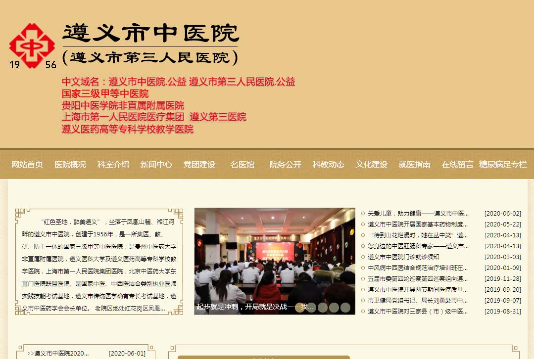 红色圣地,醉美遵义”,坐落于凤凰山麓、湘江河畔的遵义市中医院,创建于1956年,是一所集医、教、研、防于一体的国家三级甲等中医医院,是贵州中医药大学非直属附属医院,遵义医科大学及遵义医药高等专科学校教学医院,上海市第一人民医院集团医院,北京中医药大学东直门医院联盟医院。是国家中医、中西医结合类别执业医师实践技能考试基地,遵义市传统医学确有专长考试基地,遵义市中医药学会会长单位。老院区地处红花岗区凤凰南路8号,编制床位600张,开放床位632张。现有职工830余人,其中副高以上职称64人,学科带头人18人,博士3人,硕士研究生60余人,省市级名老中医28人。医院坚持“中医为主,中西医并重”发展模式,充分发挥祖国医学特色优势。医院拥有41个行政临床医技科室;拥有有遵义市老年病临床医学中心、遵义市神经内科(脑病)临床医学中心、遵义市糖尿病足工作室;脑病科为省级重点学科;肿瘤科、肺病科、脾胃病科、骨伤科、推拿科、内分泌病科、妇产科为省级重点建设专科。拥有包括64排CT、磁共振、DR、数字减影血管造影系统(DSA)、腹腔镜、钬激光、彩超、全数字胃肠镜、微波深部肿瘤治疗仪、体外震波碎石机、全景口腔机等大型医疗仪器。医疗设备先进,内外妇儿科室较为齐全。医院拥有 “消栓通络胶囊”、“金黄散”等10多个院内制剂,中医特色明显,疗效显著,深受患者青睐。具备了较强的中西医综合诊治能力,满足群众就医需求。新蒲新院位于新蒲新区东联二号线与纵二路交叉口,占地121亩,编制床位800张,一期建筑面积12.3万平方米,总投资13亿元,于2019年投入使用,新老院区实行“一院两区”同质化运营模式。面对新的起点和机遇,医院秉承“尊崇国医,义行仁术;德高术精,止于至善”的院训精神,以“弘扬中医特色,打造服务精品”为目标,坚持医院公益性,走内涵发展、质量发展、特色发展道路,全面推进人才立院、科技强院、特色兴院、依法治院的发展战略,为努力建设中医特色突出,中西医结合并重,集医疗、教学、科研、预防、保健、康养等中医药综合服务能力遵义第一、全省一流、西南知名,具有广泛影响力的一所群众信赖、同行尊重、政府满意、员工自豪的三级甲等中医医院而努力奋斗!