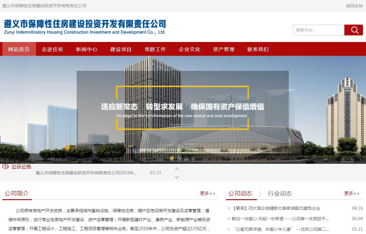 遵义市保障性住房建设投资开发有限责任公司成立于2012年5月,注册资本金1亿元,由市人民政府批准,与遵义市国有资产投融资经营管理有限责任公司按照“两块牌子、一套人马”的模式管理运营。2017年12月,按照市委、市人民政府安排部署,通过股权合并的方式整合为遵义市投资(集团)有限责任公司一级子公司。公司拥有房地产开发资质,主要承担城市基础设施、保障性住房、棚户区危旧房开发建设及运营管理;遵循市场原则,进行商业性房地产开发建设、资产运营管理;开展新型建材产业、康养产业、新能源产业等投资运营管理;开展工程设计、工程施工、工程项目管理等相关业务。截至2019年末,公司总资产超过170亿元。公司内设职能部门8个,分别为综合办公室、党群工作部、财务融资部、审计法务部、资产管理部、规划发展部、工程管理部和征拆管理部。下设全资子公司3个,分别为遵义市住投房地产开发有限责任公司、遵义市住投物业管理有限责任公司、遵义市住投项目管理咨询有限责任公司。参股子公司7个,分别为遵义绿色建筑产业投资经营有限公司、遵义城投健康产业有限公司、遵义金永物资有限公司、贵州桃花江康养产业投资公司、遵义市城投商品混凝土有限公司、遵义中建投资建设发展有限公司、遵义市中石化住投能源发展有限责任公司。公司自成立以来,陆续启动了银河片区幸福苑保障性住房及配套基础设施建设项目、共青大道公共租赁住房项目、兰家堡棚户区改造项目、万里路立交改造项目、遵龙大道项目、桃溪大道项目、官井东路—子尹隧道联络线项目、市一医片区棚户区改造项目、大健康建设项目(含碧云峰生态健康城和母婴护理中心)、湘江河景观提升改造项目等16个工程项目,其中:银河片区幸福苑保障性住房项目和共青大道公共租赁住房项目共建公租房8305套,为全市体量最大的公租房项目;万里路立交改造项目仅用5个月时间,于2015年12月30日提前建成通车;官井东路—子尹隧道联络线项目于2018年5月31日交付使用,为2018年中心城区路网建设中第一个建成通车项目;桃溪大道项目双向10车道,路宽60米,为当前中心城区路网建设中最宽的市政道路工程;大健康建设项目计划投资120亿元,已列为省、市重点工程项目,建成后将成为全市最大的健康产业项目。兰家堡棚户区改造项目一期工程8号楼荣获“2017年度贵州省建筑工程优质质量结构工程杯竞赛奖”、兰家堡棚户区改造项目一期工程7-9号楼荣获“2017年度贵州省建筑安全文明施工样板工地”称号、银河片区幸福苑保障性住房及配套基础设施建设项目荣获“2016年度遵义市建筑安全文明施工样板工地”称号。公司经营管理的公租房、配套商业、停车场等国有资产共计32.47万方,年均收入2000余万元,同时累计为全市重点工程项目融资1200000万元。当前,公司保障性安居工程、房地产开发工程、市政重点项目工程、城市道路工程等工程建设全面实施,总投资达300亿元,资产规模和经营实力不断壮大,取得了良好的经济效益和社会效益,为地方经济发展做出了积极贡献。展望未来,发展前景良好,公司将立足“项目建设、资产经营、产业发展、融资创新”四大核心主业,充分发挥在城市基础设施、重大工程项目建设、完善城市功能等领域拥有的竞争优势,不断提升项目建设与经营管理能力,努力实现“新常态”下转型、突破、跨越的发展目标, 走出一条适应国际国内新形势,切合省情市情的新的发展之路。