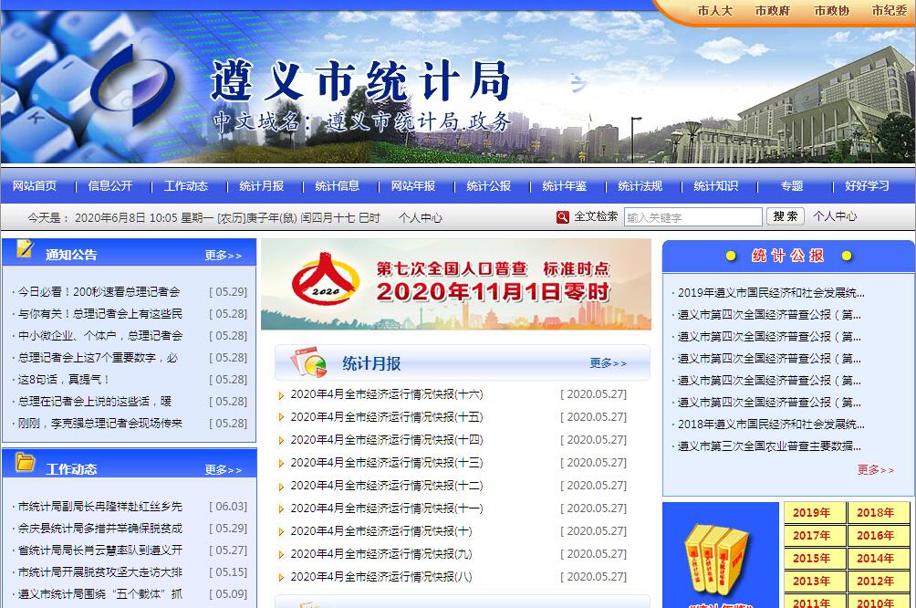遵义市统计局主要职责:(一)贯彻执行国家统计工作的方针、政策、法律、法规和有关标准、制度,承担组织领导和协调、指导全市统计工作,确保统计数据真实、准确、及时。(二)制定全市统计现代化建设规划、统计调查计划和调查方案,建立全市统计方法、统计调查项目和统计报表体系,建立健全市级国民经济核算体系和统计指标体系。(三)组织实施各项统计调查和重大的国情国力普查,汇总整理全市基本统计资料,对国民经济、科技进步、社会发展、资源环境和社会舆情等情况进行统计分析、统计预测和统计监督;统一核定、管理、公布全市性的基本统计资料,定期向社会公众发布全市国民经济和社会发展情况的统计信息,及时向市委、市人民政府及有关部门提供统计信息和咨询建议。(四)依法审批各部门的统计调查计划和调查方案,指导基层统计业务基础建设、部门统计基础工作,监督检查统计法律、法规的实施;建立健全统计数据质量审核、监督和评估机制,开展对重要统计数据的审核和监督。(五)负责全市全面小康社会创建工作指标的调查、测算等工作,统筹做好全面建设小康社会的统计监测和统计分析,及时向市委、市人民政府提出工作建议,协调、指导全市全面小康创建活动的业务工作。(六)监督管理各县(市、区)统计行政主管部门的中央统计事业费及专项经费;协同管理各县(市、区)统计局局长、副局长;会同有关部门组织管理全市统计职称考试和评聘工作。(七)建立健全和管理全市统计信息自动化系统和统计数据库体系,指导各县(市、区)统计信息化建设。(八)组织指导全市统计科学研究、统计教育和干部培训工作,开展统计科学交流与合作,协调全市经济社会统计咨询服务工作。(九)承办市人民政府和省统计局交办的其他事项。